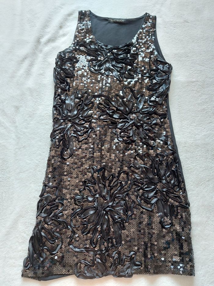 Robe noire strass et fleurs en relief taille M - photo numéro 1