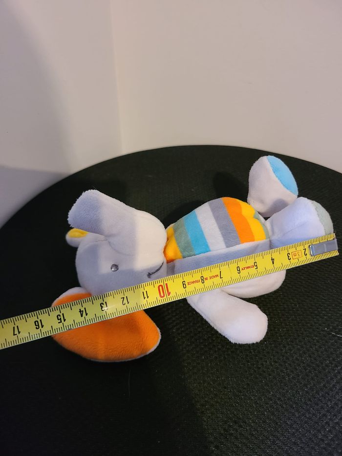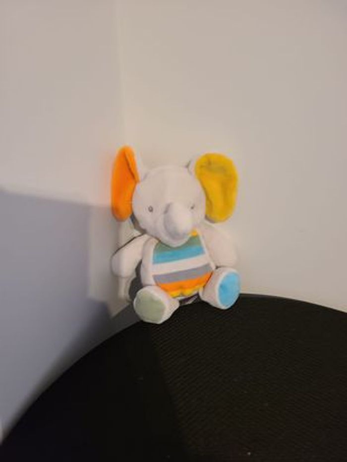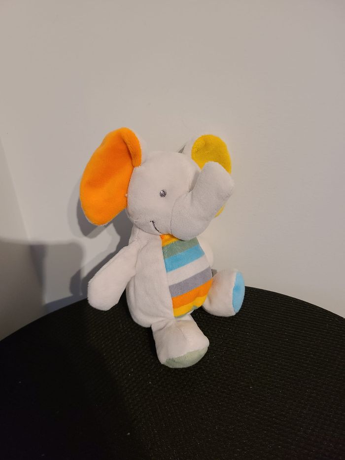 DOUDOU ÉLÉPHANT GRIS ORANGE JAUNE BLEU VERT TEX 17 cm env. 114
