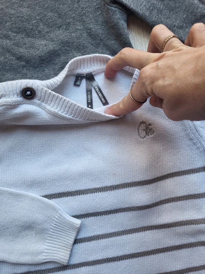 Lot de 2 pulls chauds hiver garçon 6ans. Marques hm et orchestra. Le blanc a une mini trace à signaler (cf.photo). #6anstristan #pull #lotpull #pullchaud #hm #orchestra #6ans