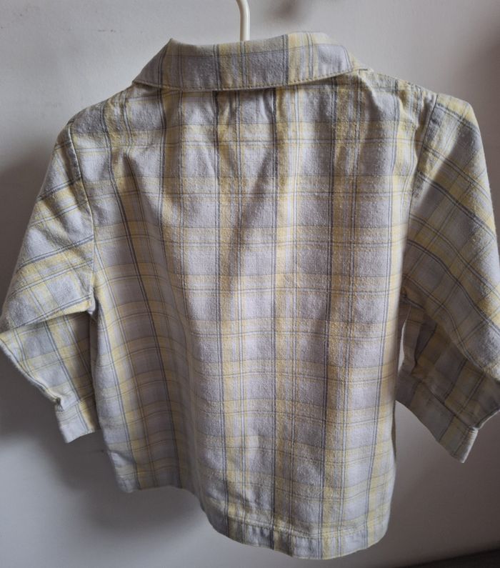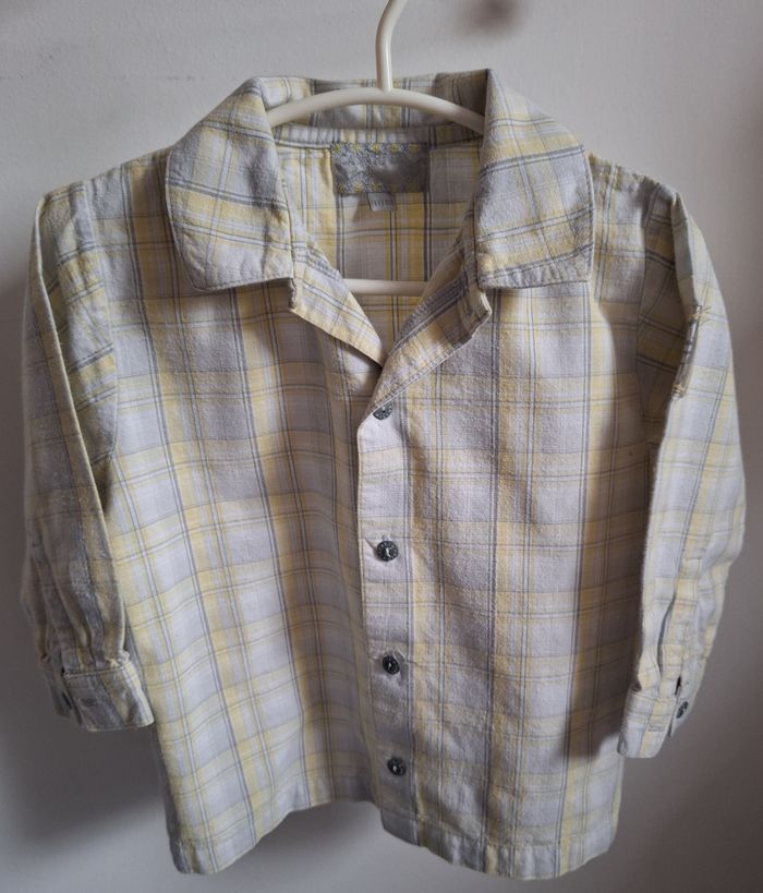 GARÇON 18 MOIS N°786 chemise carreaux Gris / jaune 100 % coton Taille 18 mois Canari baby 2€ #kelly_garçon18mois