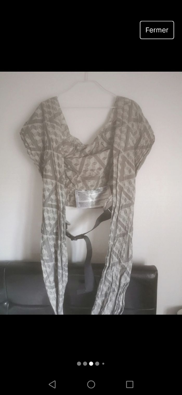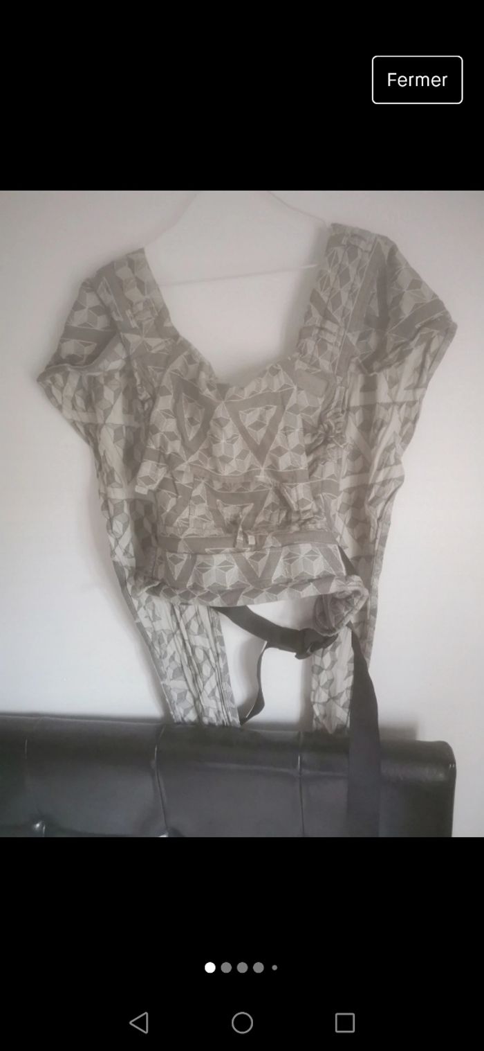 Porte bebe fly click marque fidella modèle baby à partir de la naissance le tablier est réglable en hauteur et largeur matière très soutenante. À la taille c'est une ceinture à clip et sur les épaules 2 pans deployable en tissus d'écharpe pour nouée bébé.