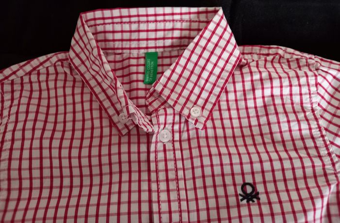 Ensemble 4/5 ans composé d'une chemise United Colors of Benetton et d'un pantalon Tex, taille élastiquée avec cordon, bande élastique à la taille et au bas des jambes, poches