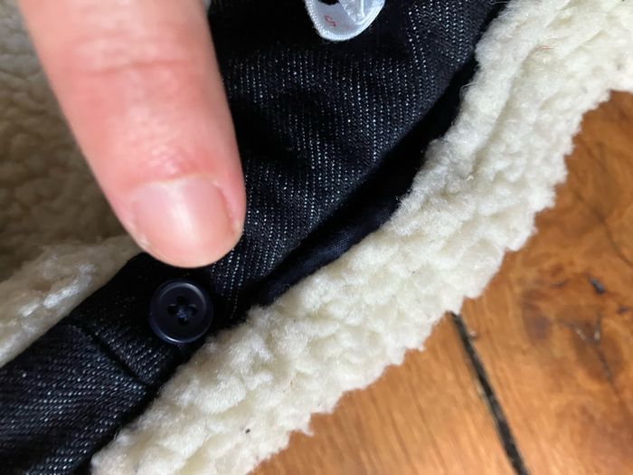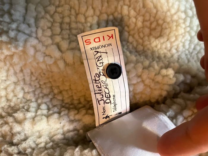 Occasion TBE / un bouton au niveau du col (amovible) manquant mais le bouton de secours est fourni, il est dur l’étiquette interne