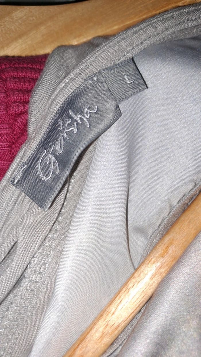 T shirt avec motif. Voile sur devant. Attention quelques fils tirés ca se voit de vraiment pres. Sinon bon état. Taille L. Geisha #prisci260990tailleL