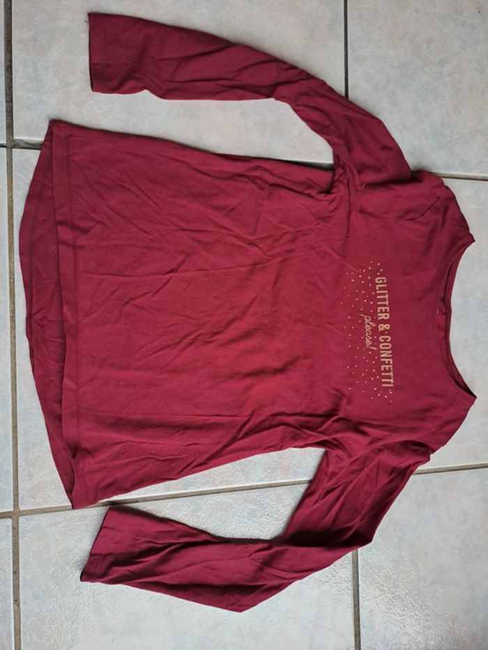 Blouse manches longues avec inscription bordeaux taille 12 ans. Kiabi. Très bon état. #prisci260990taille12ans