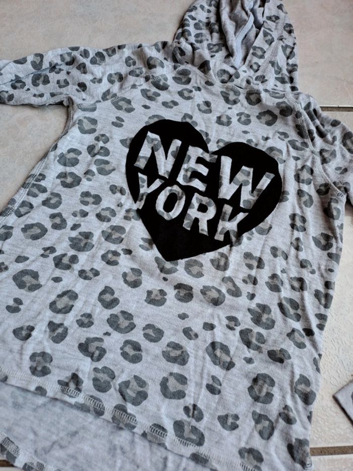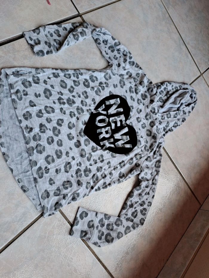 Sweat à capuche léopard léger. Pas doublé. Motif léopard et cœurs. Gris. Taille 9 10 ans. 134 140 cm. H&M #prisci260990taille9ans