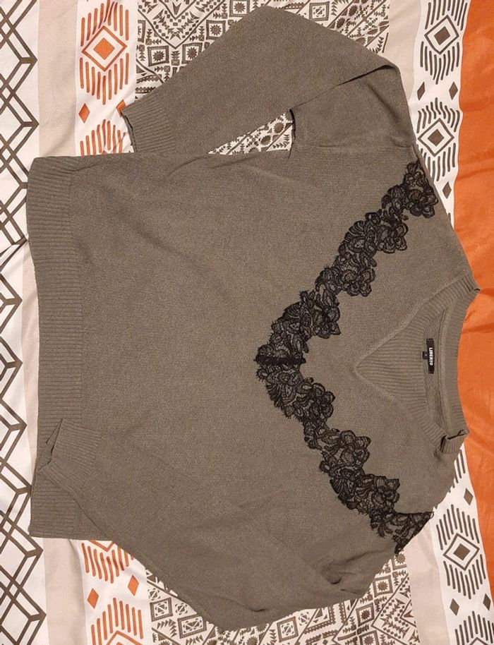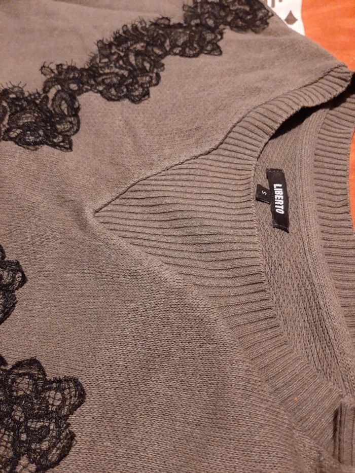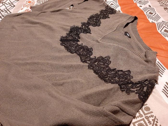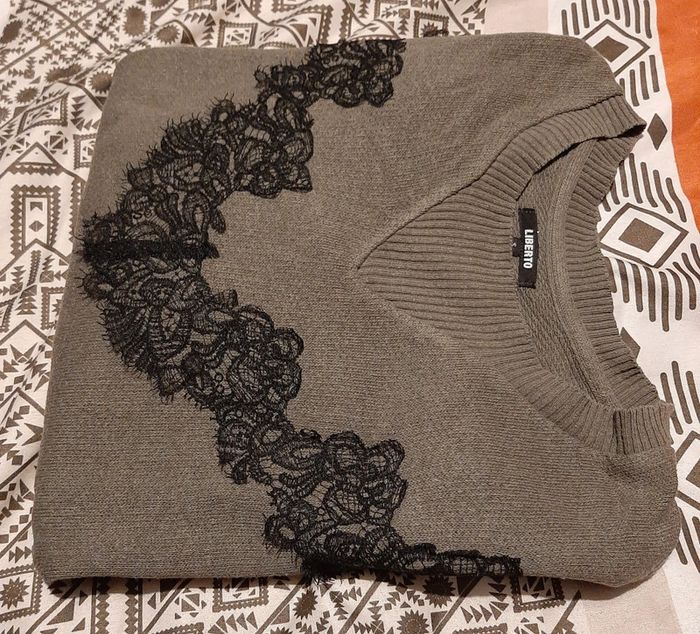 Joli pull kaki, Avec détail de dentelles noir au niveau de la poitrine. Taille S, marque liberto. Très bon état. N'hésitez pas à aller faire un tour dans mon dressing de nombreux autres vêtements à vendre à des tout petits prix et prix dégressif sur les lots 🌸je reste disponible pour toutes questions 😀