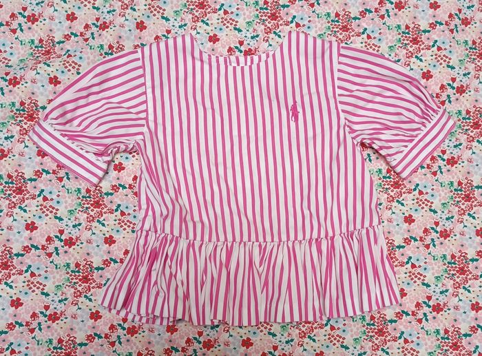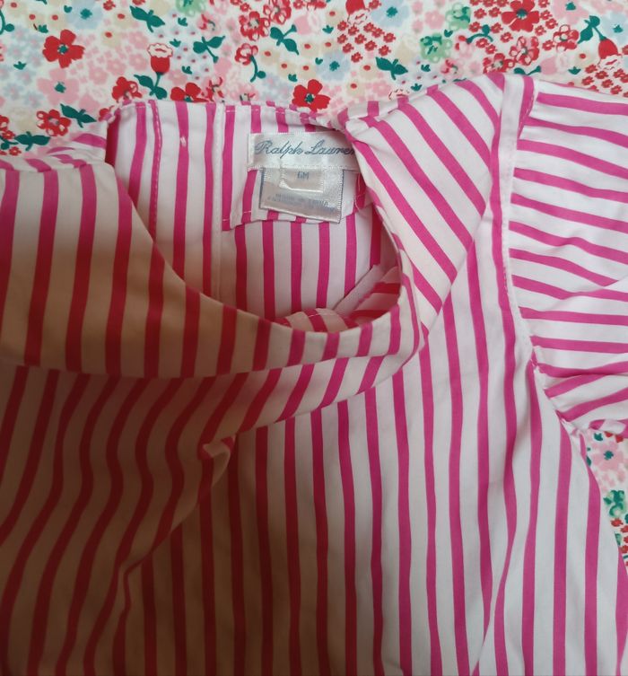 Jolie chemise blouse rayures roses et blanches Ralph Lauren taille 6 mois boutonnage dans le dos
