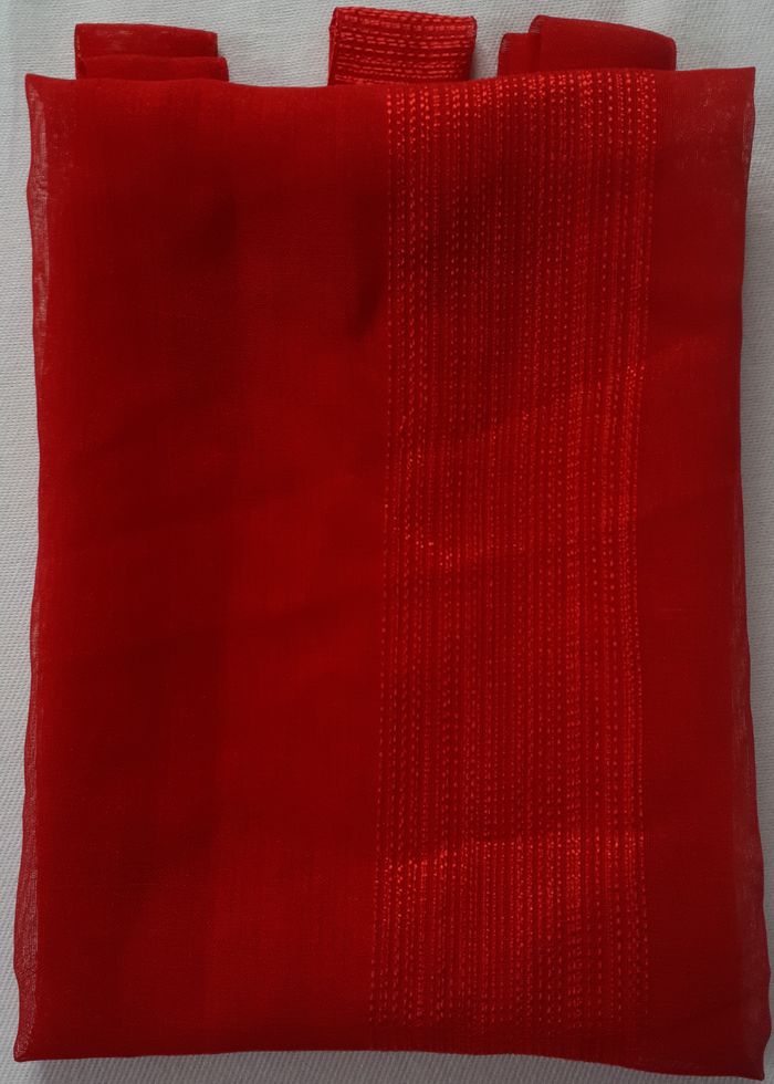 Voilage droit uni finition pattes rouge