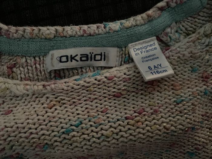 Pull 6 ans , bon état Trace usure uniquement sur l’étiquette OKAÏDI ( cf photo )