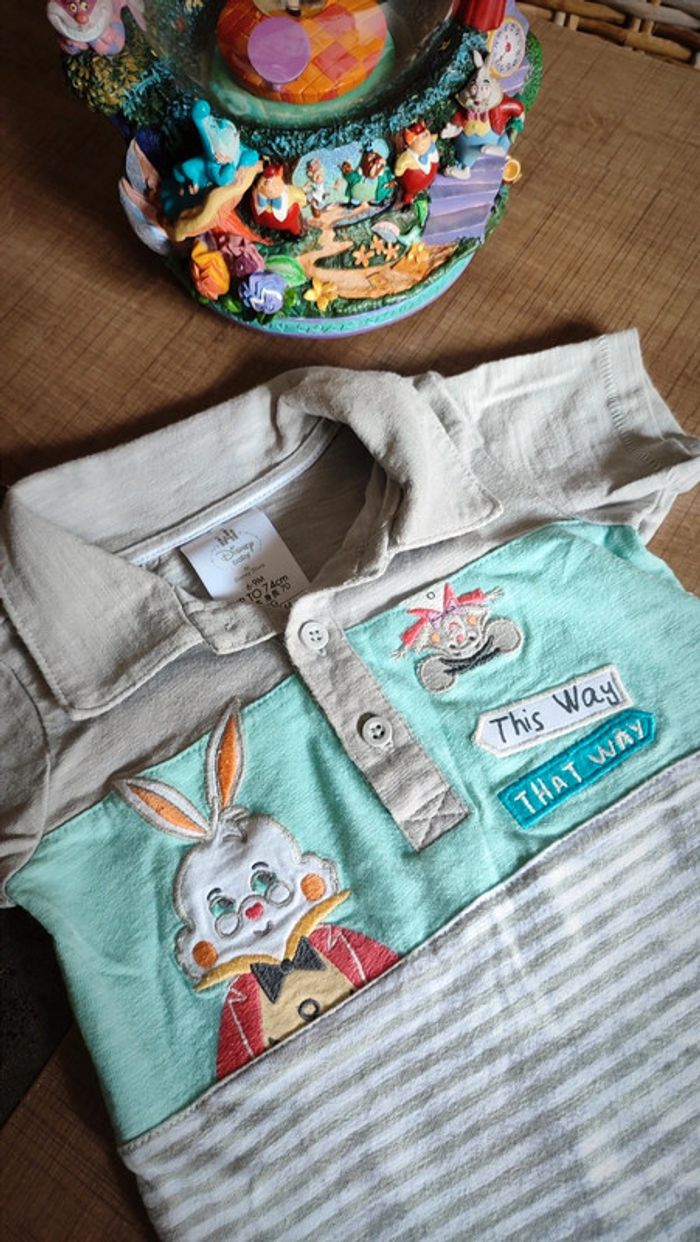 Combishort été De marque Disney En taille 6 - 9 mois jusqu'à 74 cm A l'effigie d'Alice au pays des merveilles Avec comme un personnage le lapin blanc et la souris dormouse. Il y a aussi des panneaux par ici et par là (this way, that way) en haut et en bas (Up there, Down there) En parfait état, porté une seule fois. Disney baby #aliceinwonderland #aliceaupaysdesmerveilles merveilles #wonderland alicia maravillas Alice mais de las maravillas cheshire cat chat lapin blanc white rabbit chapelier fou mad hatter huitre oyster original atypique atypical dormouse herissons hedgehog dog flamingo flamant rose queen reine coeur meraviglie Alice no pais das maravilhas Maravilhas stregatto