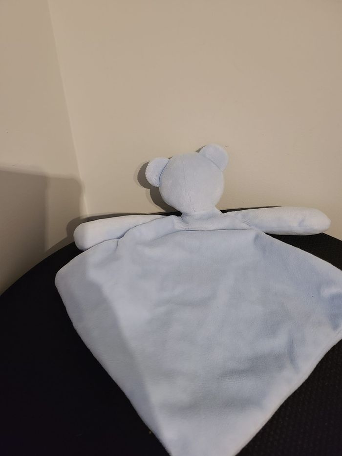 Doudou Plat ours ourson futura finances Bleu Ciel bouche yeux gris 116