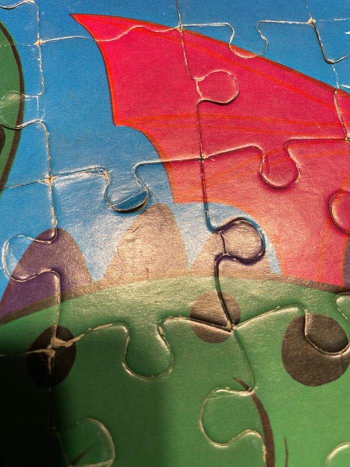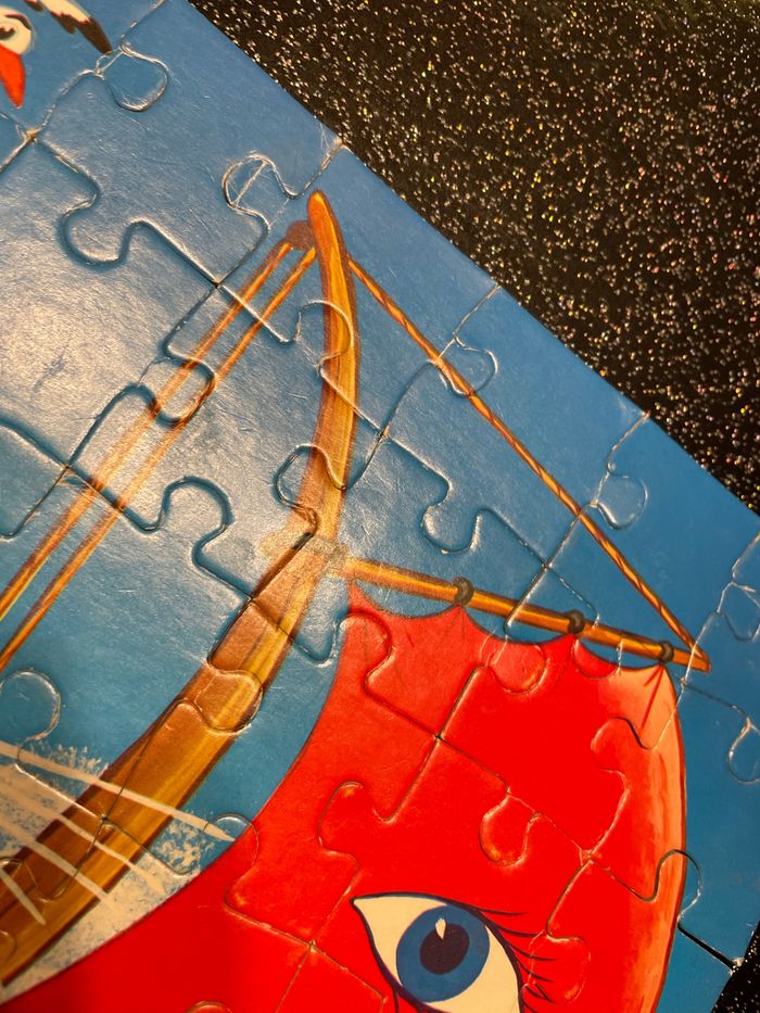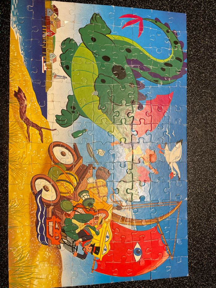 Puzzle Disney Peter et Elliott, ancien, 126 pièces, complet Puzzle schmidt 34x53cm Le dessous de la boîte a un angle à recoller Traces d’usure sur puzzle et boîte Vintage