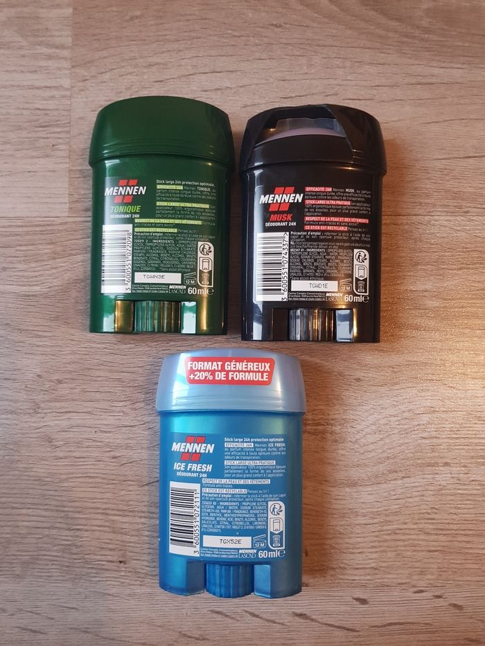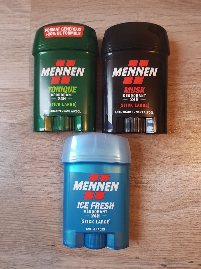 Vend un lot de 3 sticks mennen 60 ml Les bouchons sont cassés mais les produits sont neufs
