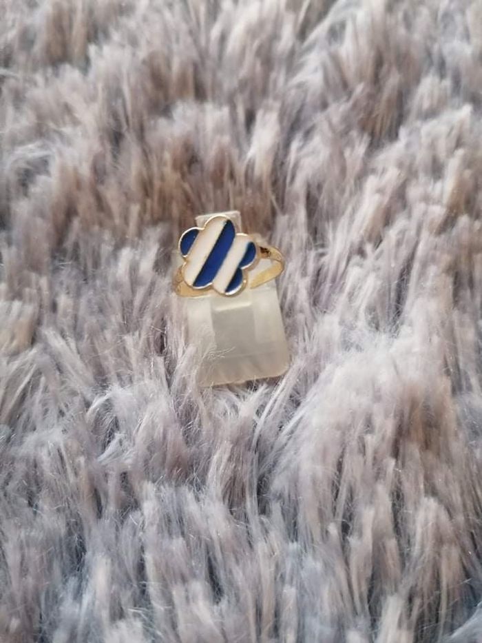 Bague dorée fantaisie fleur rayures blanc et bleue réglable neuve