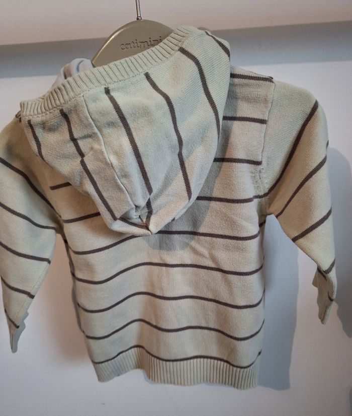 GARÇON 18 MOIS N°814 gilet fin zippé Beige marron rayé 100% coton Taille 18 mois Kimbaloo 2€ #kelly_garçon18mois