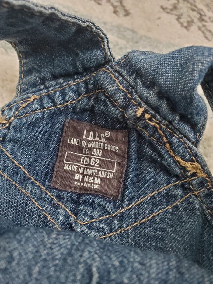 Salopette en jeans, taille 6 mois / 62 cm, marque H&M.