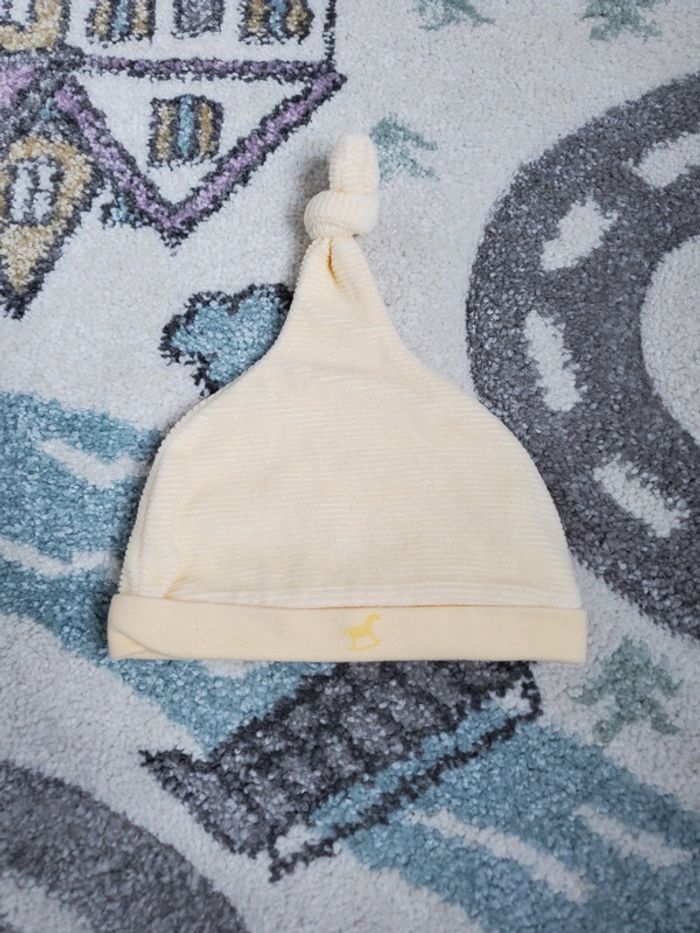 Bonnet jaune pour nourrisson. Avec cheval a bascule jaune en logo
