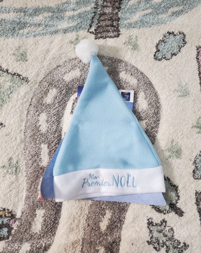 Bonnet de Noël bleu avec écrit "Mon premier Noël" pour nourrisson. Neuf jamais utilisé jamais déballé