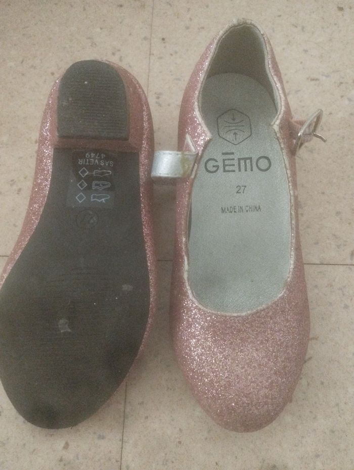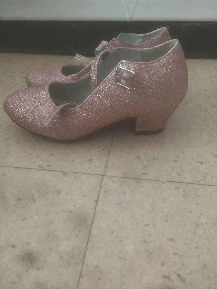 Chaussures a talons rose a paillettes Peu porté Les paillettes sont parties au niveau de l'ouverture Pointure 27