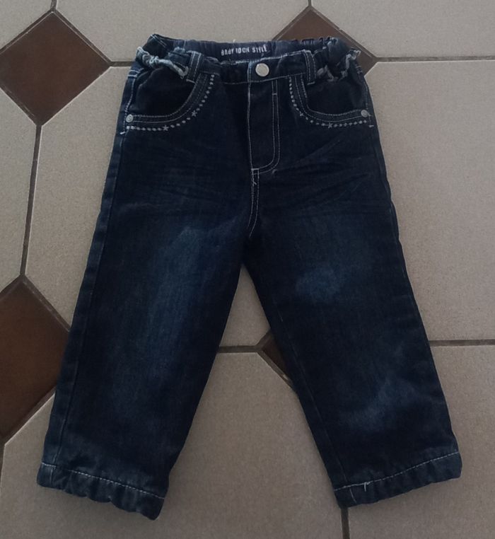 Pantalon épais en très bon état 81% coton/ 19%polyester Doublure : 69% polyester/ 25% coton/ 6% elasthanne Couleur : bleu marine Taille 18 mois