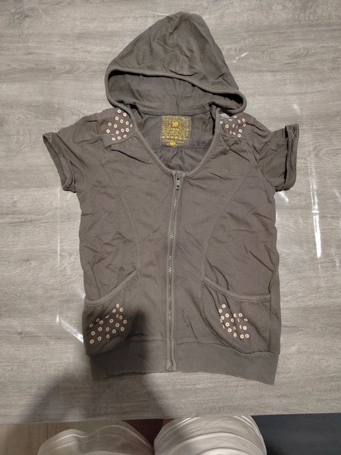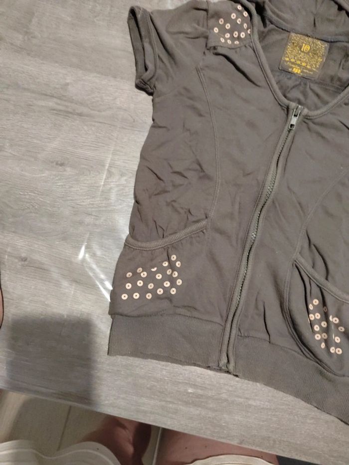 Veste manches courtes fille Taille 10 ans Bon état Couleur gris vert Fermeture éclair.