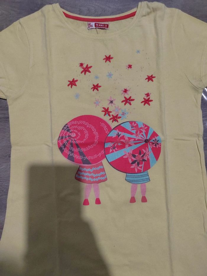 T-shirt manches courtes fille Taille 10 ans Marque DPAM Couleur jaune Très bon état