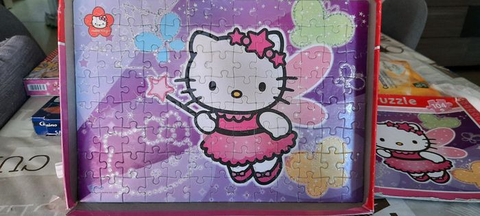 Puzzle 104 pièces avec paillettes Hello Kitty Bon état general Sans la boite.