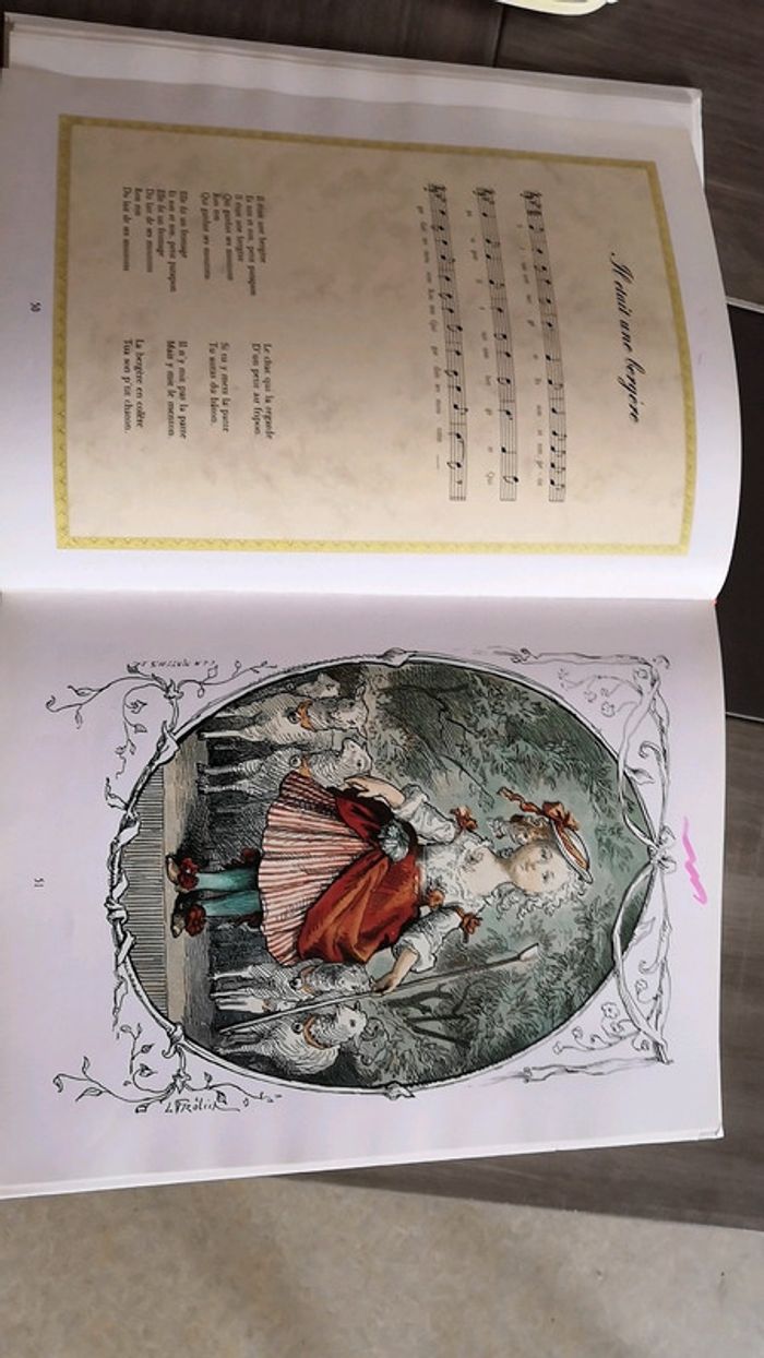 Gros livre de Refrains d'enfance. Quelques rayures sur les couvertures et 5 pages avc traces de surligneur comme sur photo.