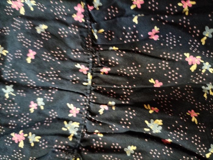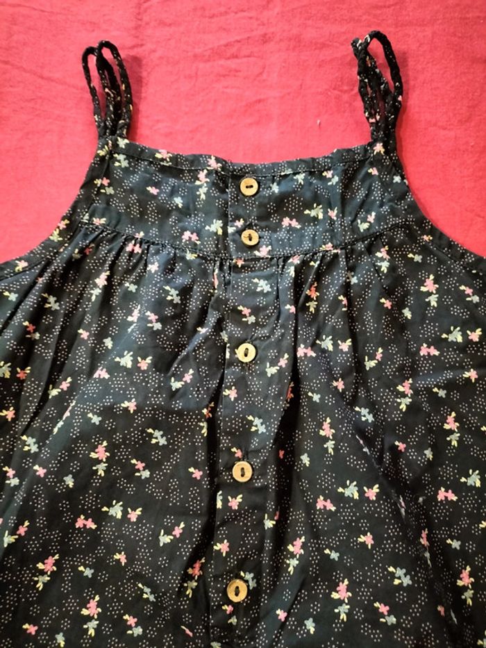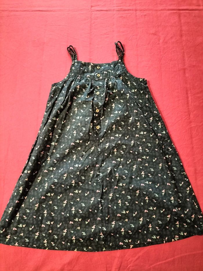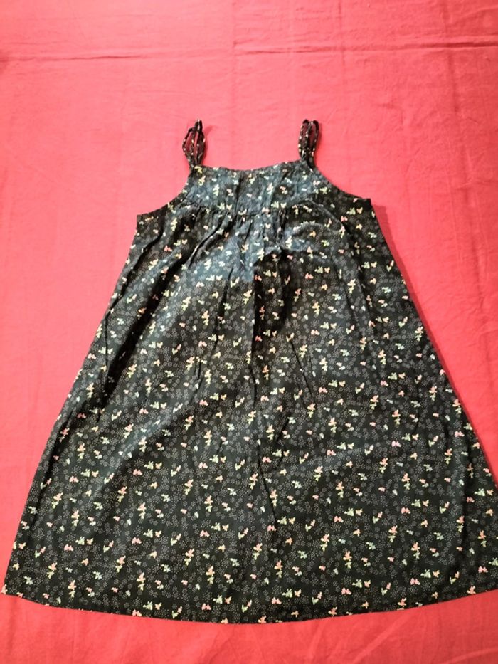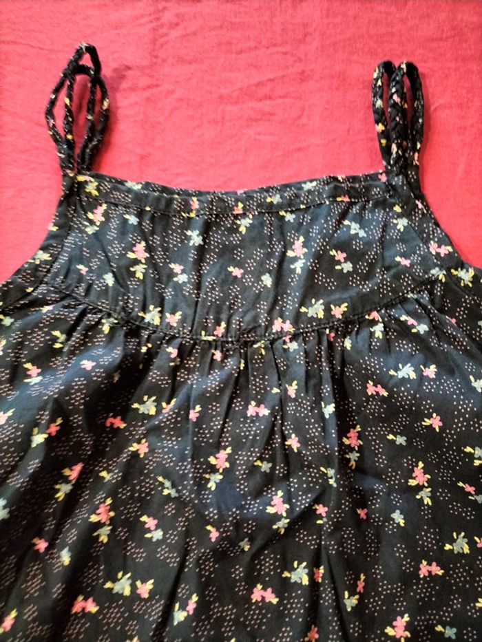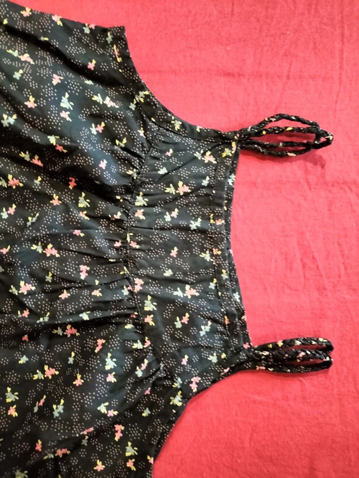 Robe a bretelles noires à motifs de fleurs et de plusieurs couleurs rose bleu jaune en très bonne état aucun trou ni tâche(cf voir photos). #bouriquet79fille6ans