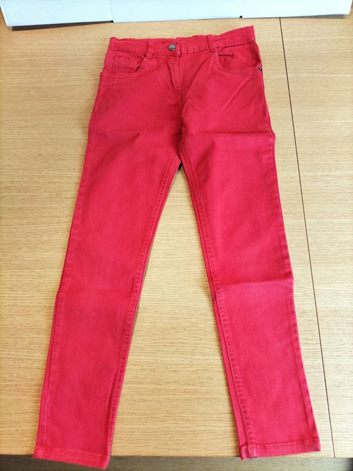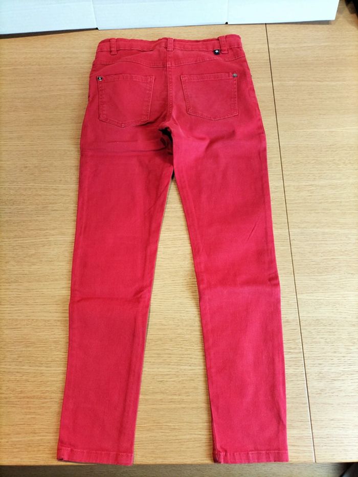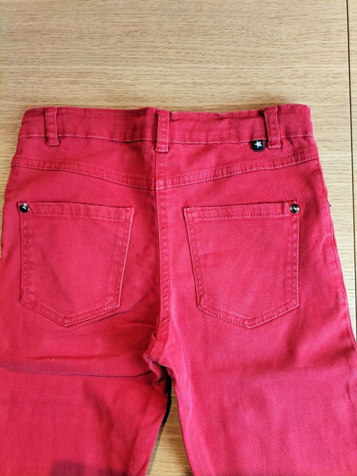 Jean, forme slim, rouge, marque Lili marelle, taille 10 ans, en très bon état.