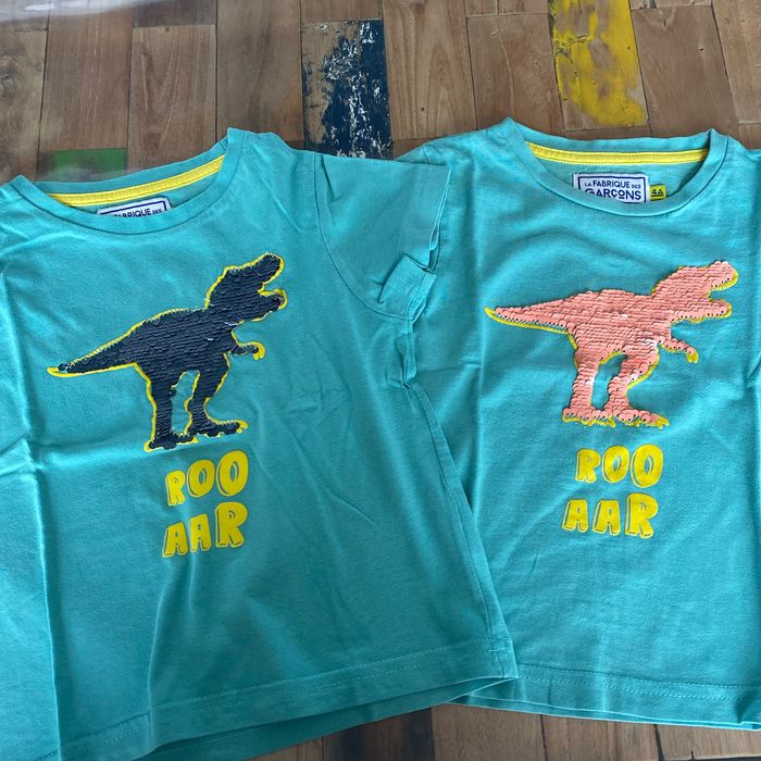 Tee-shirts en coton manches courtes T rex à sequins réversibles 🦖 4 ans Le lot de 2 Spécial jumeaux garçons #twinboy #dinosaures