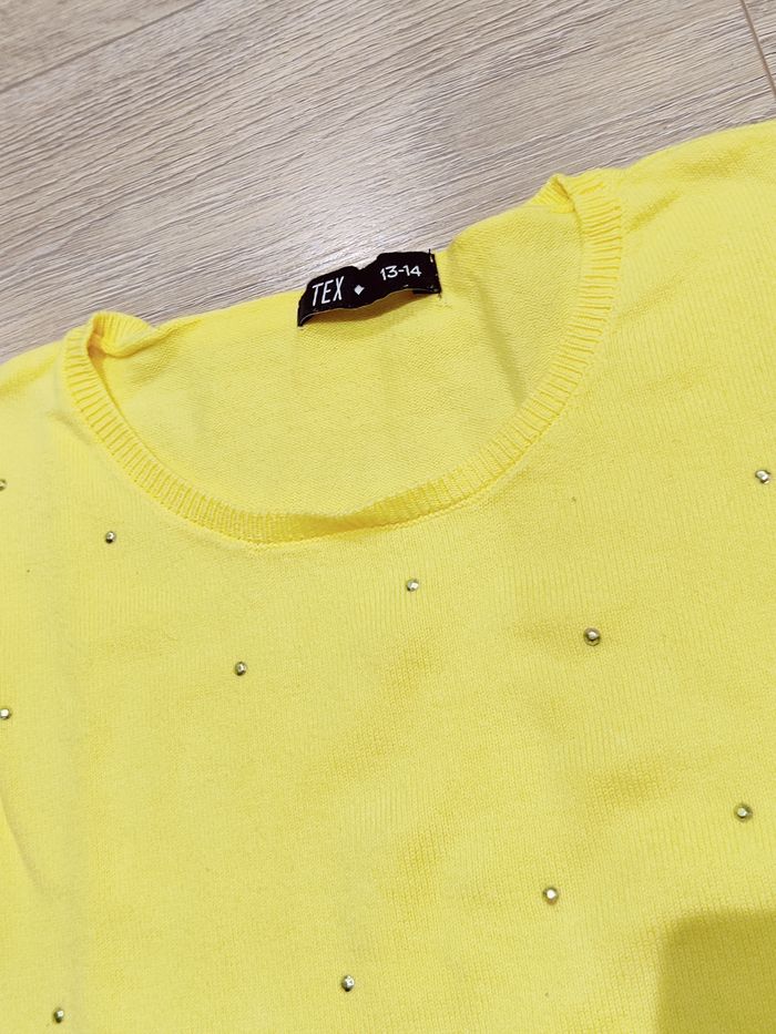 Pull fin jaune strass Tex Taille 13-14 ans Neuf - correspond à un 34-36 -  jaune avec des strass en relief - neuf juste lavé mais jamais porté #tex - envoi rapide et soigné - d'autres articles disponibles dans mon dressing, n'hésitez pas à faire un lot, je propose des remises
