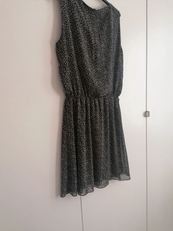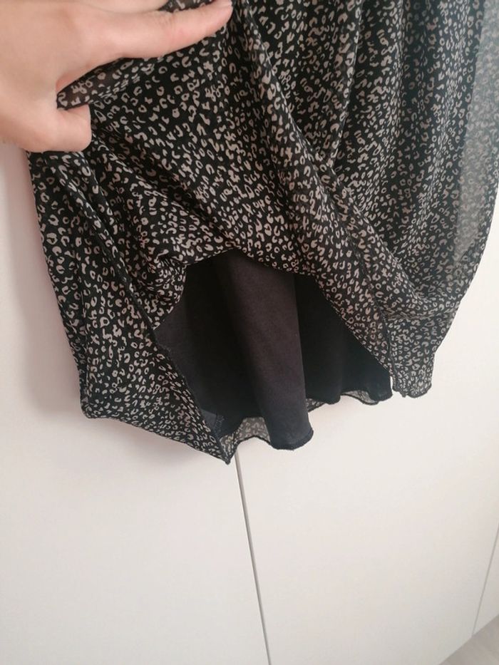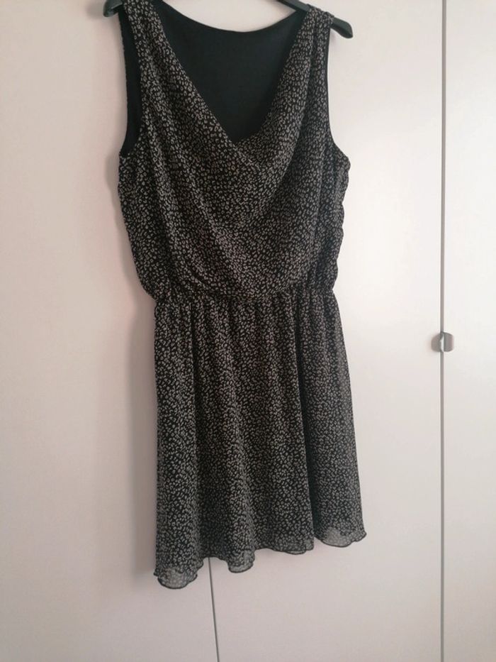 Robe fluide noir, imprimé léopard gris. Possibilité de mettre une petite ceinture à la taille. Très fluide et très agréable à porter en été. Taille S/M.