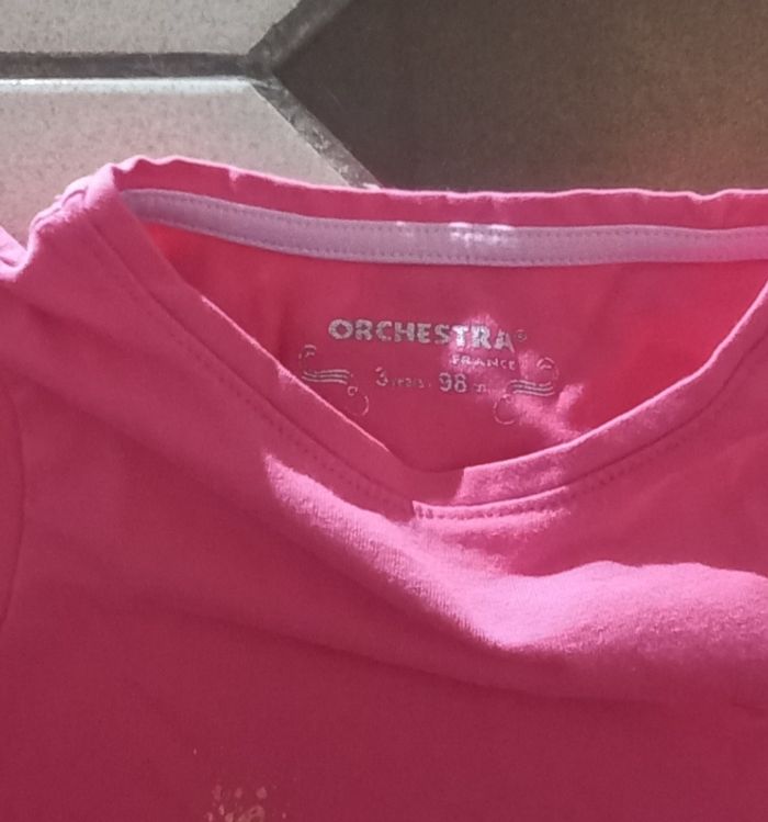 Tee shirt en très bon état 95% coton/ 5% elasthanne Couleur : rose Taille 3 ans/ 98cm