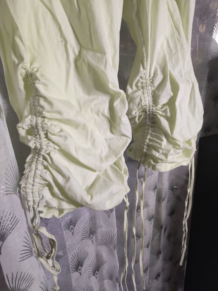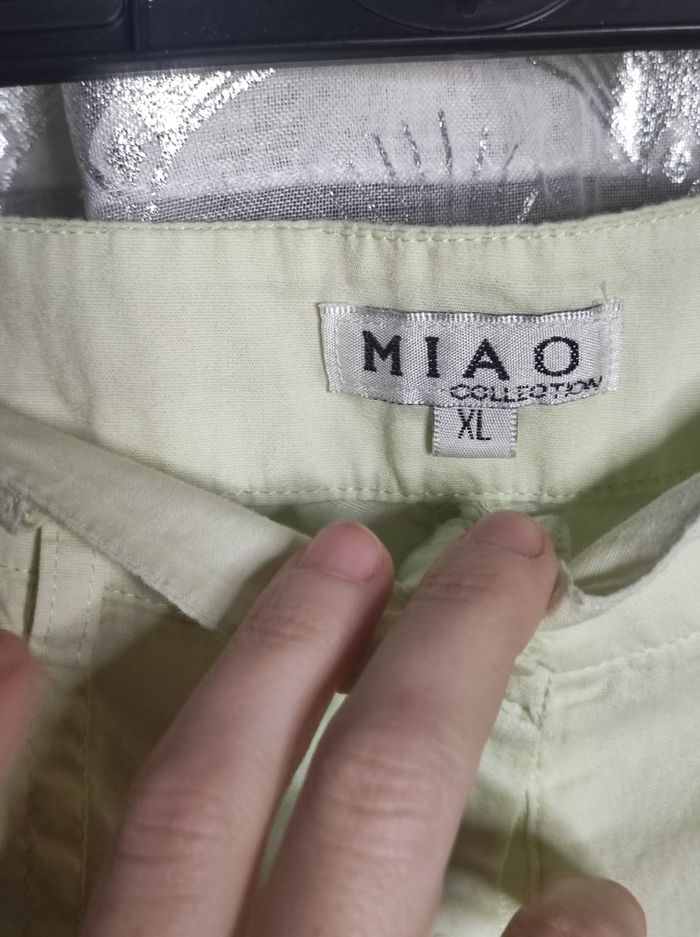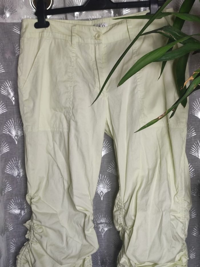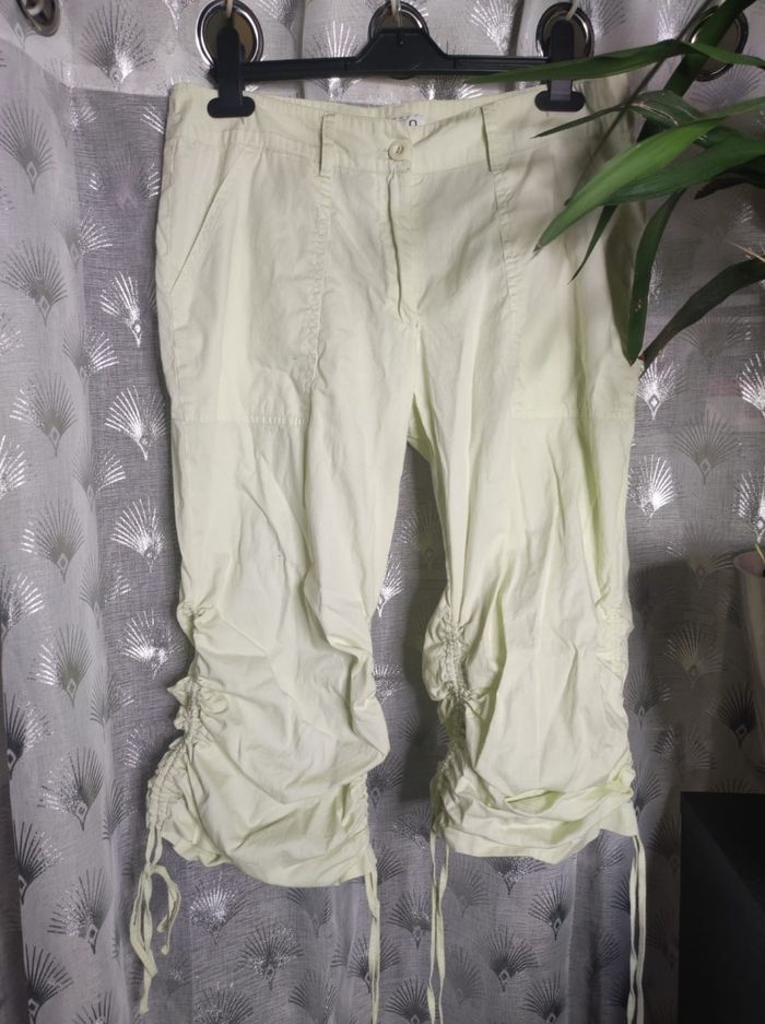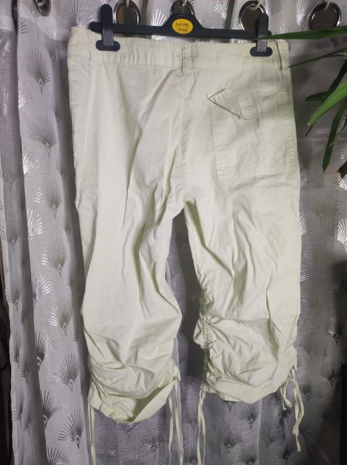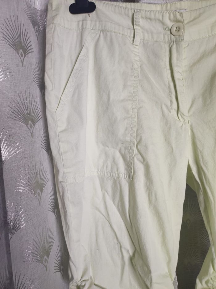 Pantacourt de couleur vert menthe clair, taille XL. Réglable aux jambes pour raccourcir ou allonger le pantalon de chez miao collection, une poche arrière a scratch et deux poches sur le côté. État parfait