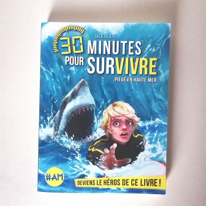 Auteur(s) : Heath Jack Editeur : Albin Michel Parution : 28/06/2017 Nombre de pages : 187 Tu es perdu au beau milieu de l'océan. Pourchassé par de dangereux mercenaires qui ont posé une bombe sur l'île où résident tes plus proches amis. Derrière toi, l'ombre grandissante d'un gigantesque requin se dessine sous les eaux. Soudain à quelques centaines de mètres de toi, une explosion déchire le rivage. Une énorme vague te projette en direction de la gueule béante du requin. Tu n'as plus beaucoup de temps. Vas-tu nager jusqu'au rivage ou tenter de chevaucher le requin pour te rapprocher de la côte ? Complots, catastrophes naturelles, bêtes sauvages... à partir de maintenant, tu as 30 minutes pour survivre ! Es-tu prêt à relever le défi ? à partir de 9 ans