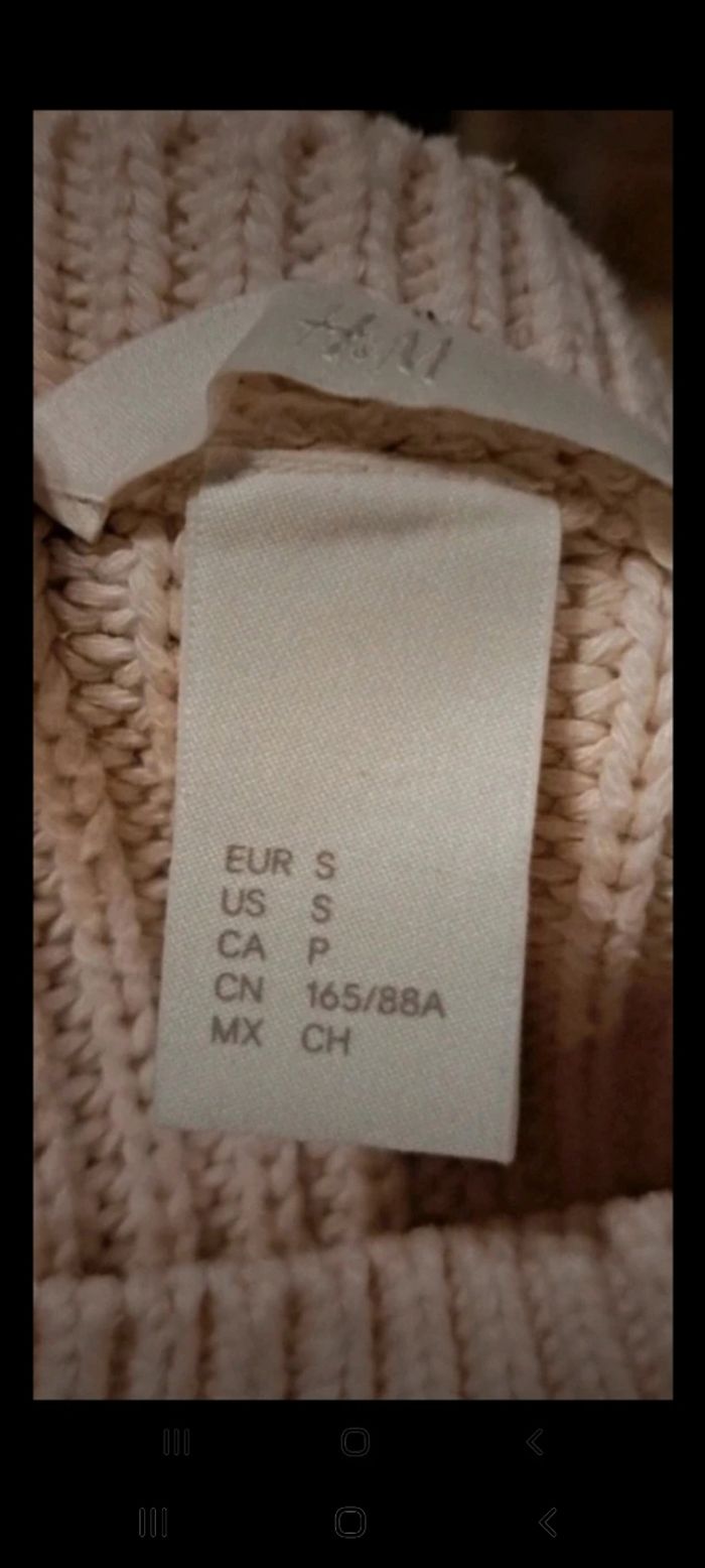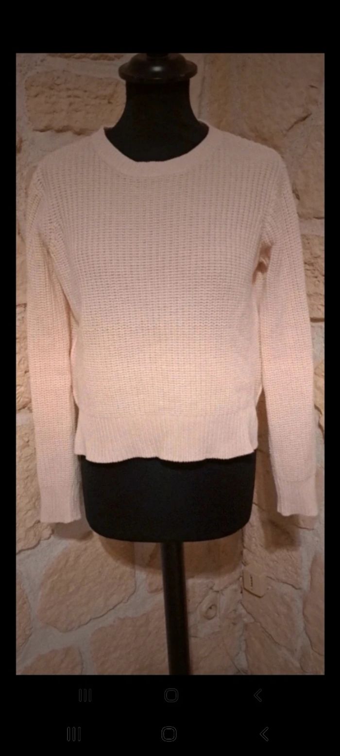 Pull hiver h&m taille S Pull un peu plus court devant que derrière. Fermetures éclair sur les côtés. Couleur rose très pâle.