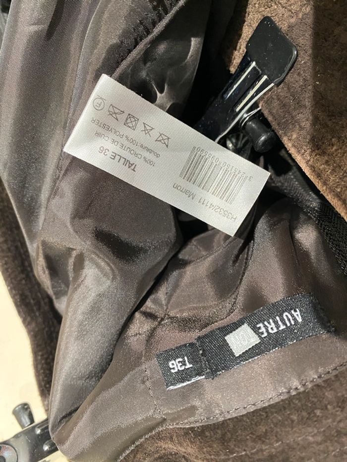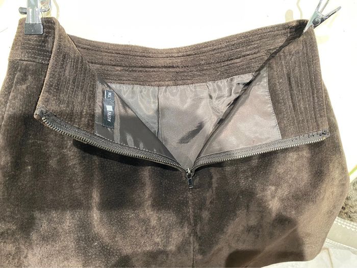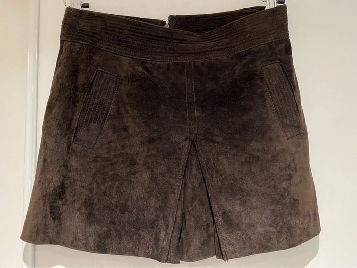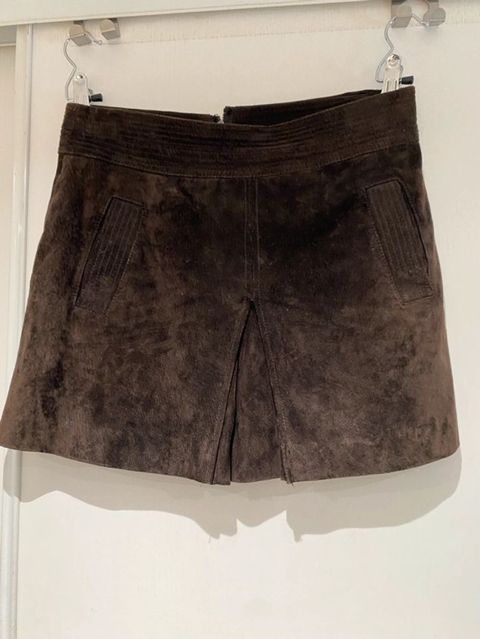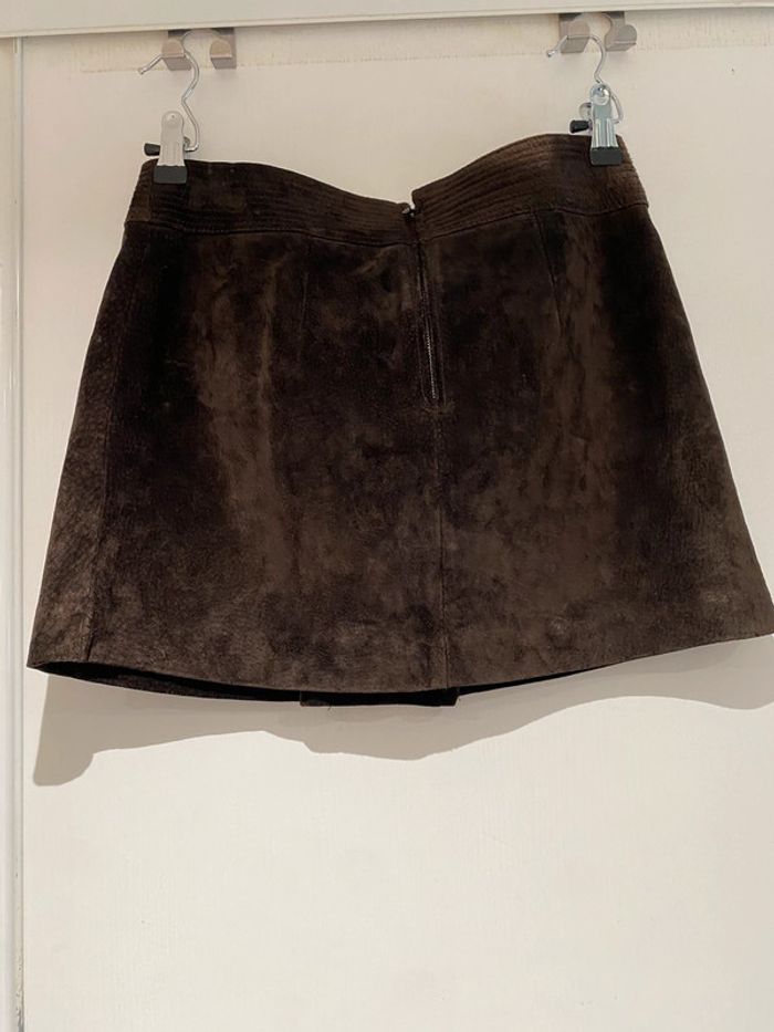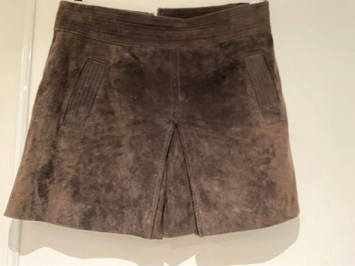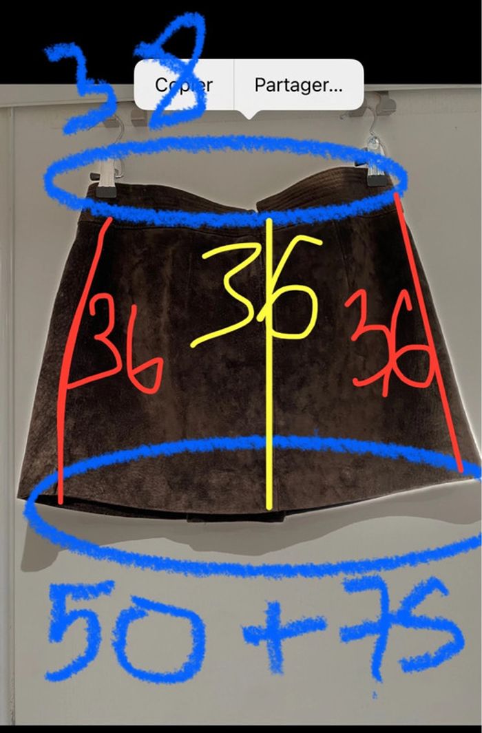 Je vends une minijupe en cuir De la marque autreton C’est un Cuir touché velours La fermeture à glissière est en parfait état comme le reste de la jupe Elle est en parfait état. Toutes les mesures sont données en photos 100 % cuir Croute De cuir Doublure 100 % polyester, couleur marron sur l’étiquette, je dirais légèrement kaki de loin. après je ne suis pas une spécialiste en couleur… Choup 400 oran 30