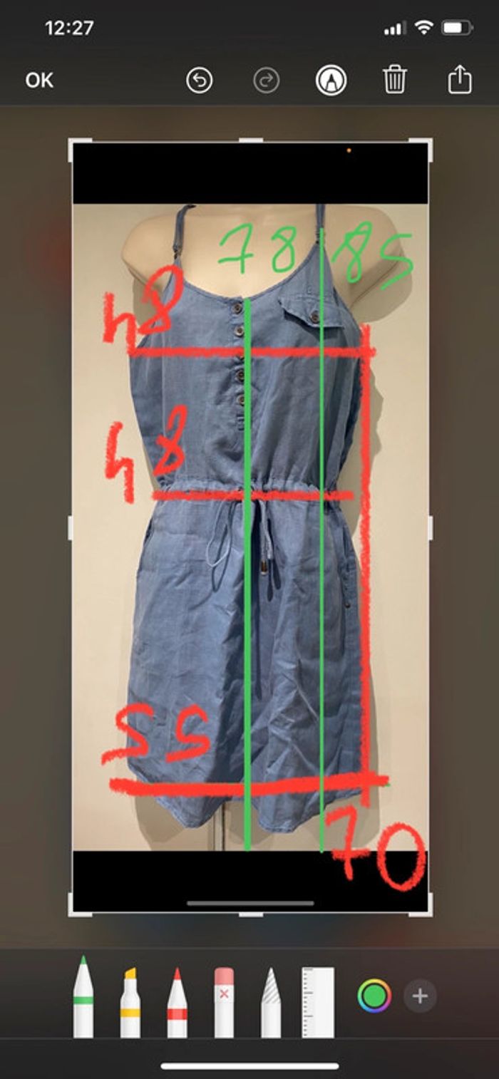 Je vends une robe De la couleur bleu gauloise. Elle est en 100 % lin Elle est en parfait état. Elle est de la marque sud express. Il y a deux poches sur le côté une à droite une à gauche. Le décolleté se ferme avec des boutons. Il y a un cordon qui tient lieu de ceinture. Les mesures sont données sur photos . D’autres photos, renseignements sur Demande Robe été lin sud express, taille M/38 bleu gauloise Choup 200 oran1