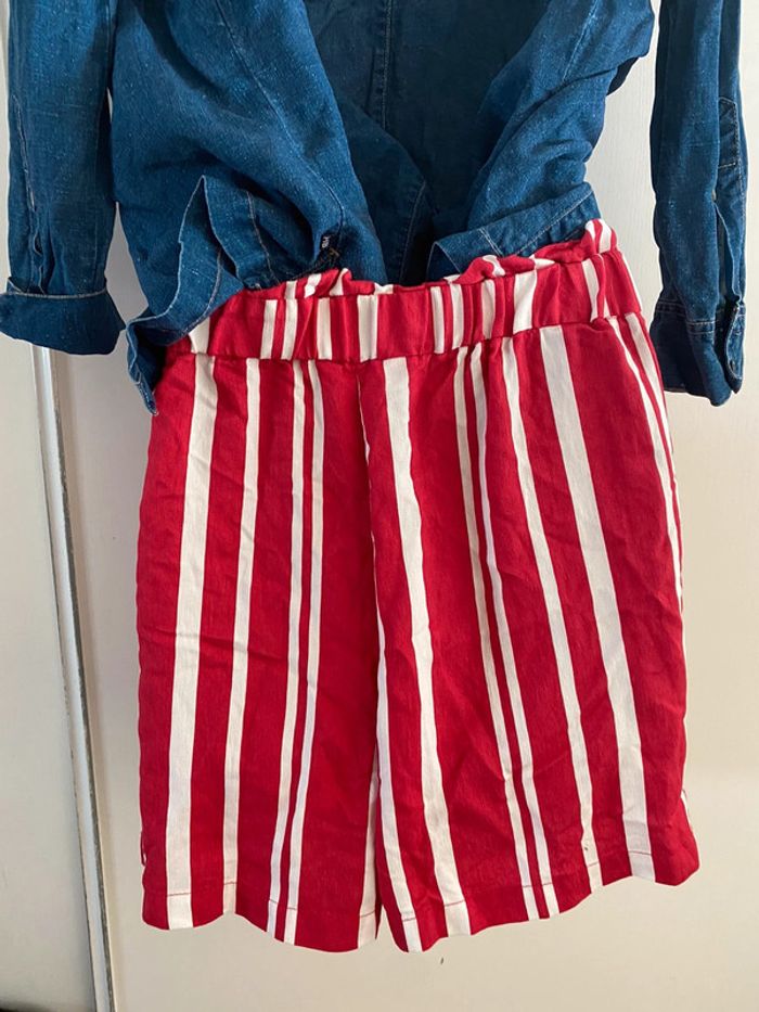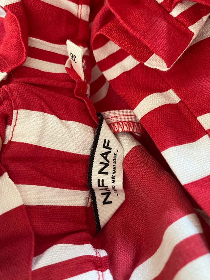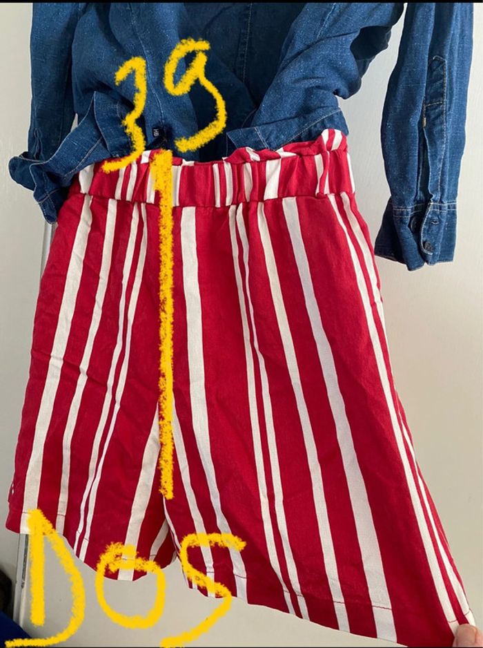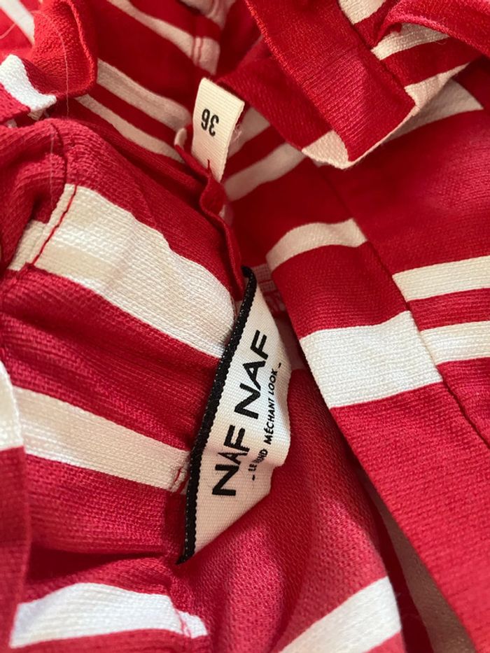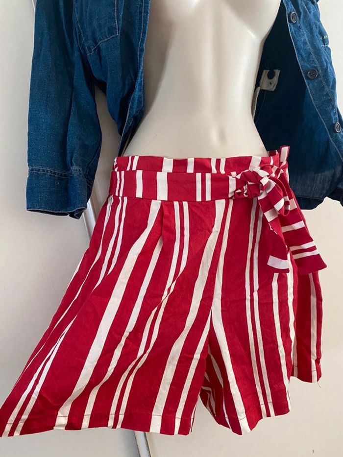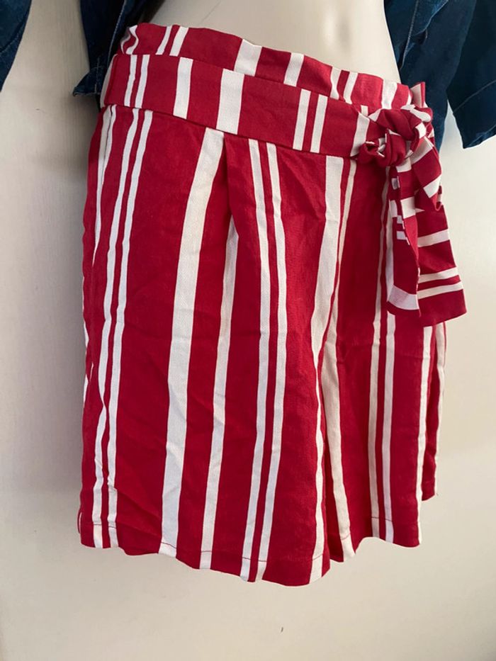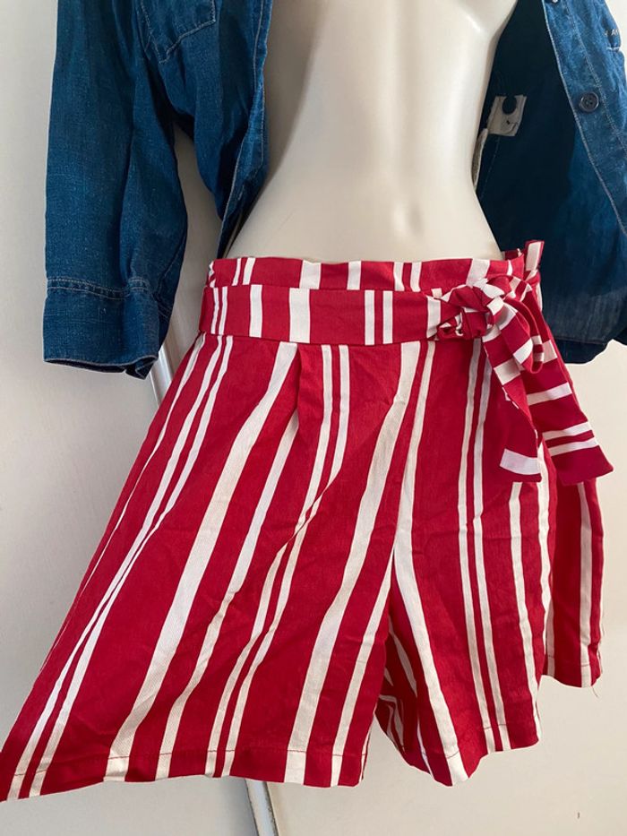 Short Naf-Naf, taille 36 rouge rayures, écru taille haute - photo numéro 19