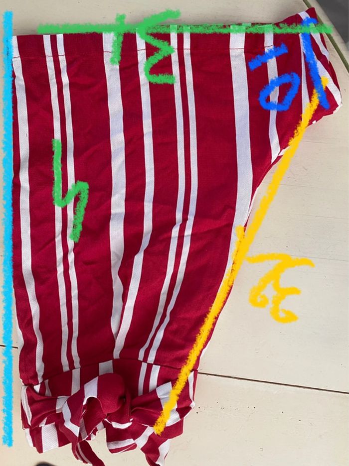 Je vends un short rouge et écru Taille haute voir Mesure sur photo Il est en parfait état La ceinture élastique dans le dos. Il y a une ceinture accrochée de chaque côté À nouer sur le devant. Lavables à basse, température, polyester, viscose D’autres photos, renseignements sur demande Choupette lb 1 70 oran21