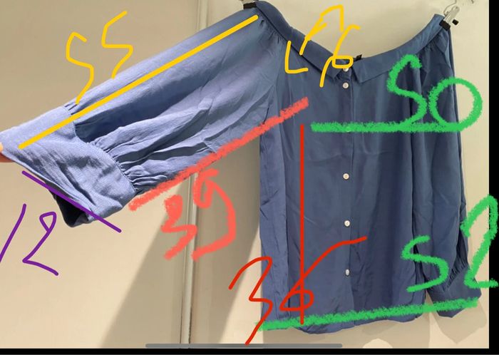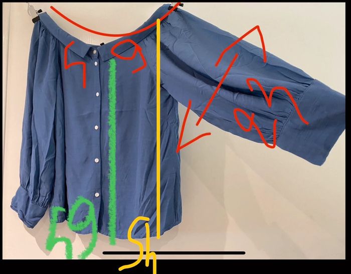 Je vends une grande chemise avec un très large décolleté, il peut se porter sur les épaules un peu découverte ou pas On voir Mesure sur photo il est en parfait état Mada lbc 240 0ran 14