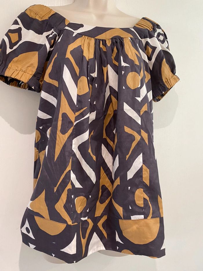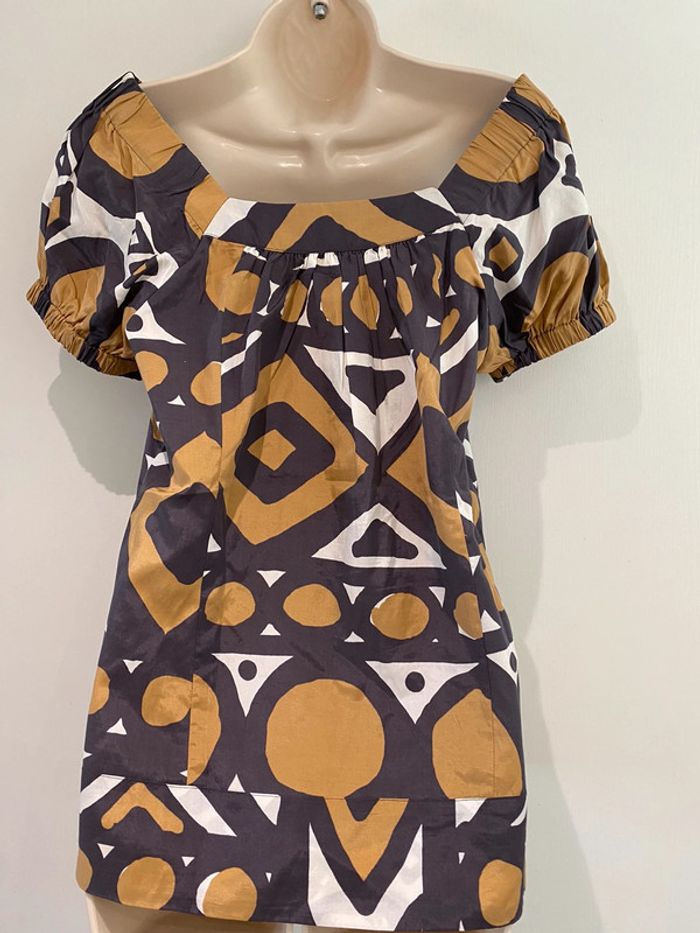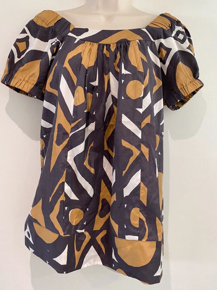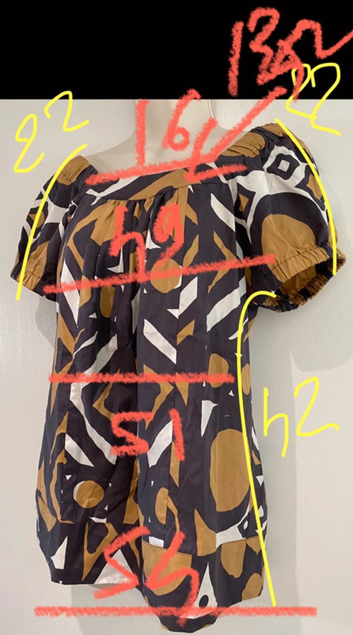 Blouse épaule découverte Caroll taille 38 soie et coton En parfait état Il y a un large élastique sur le haut de manche Mada lbc100 ora 1