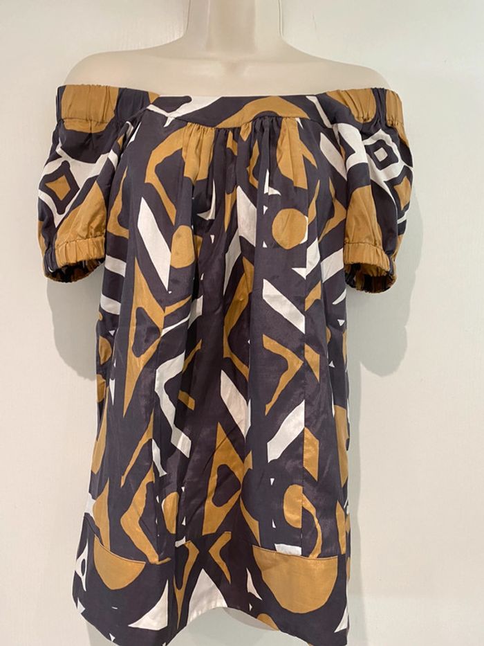 Blouse épaule découverte Caroll taille 38 soie et coton - photo numéro 1