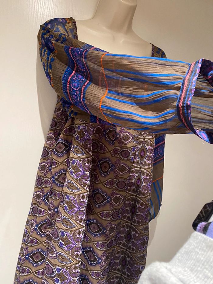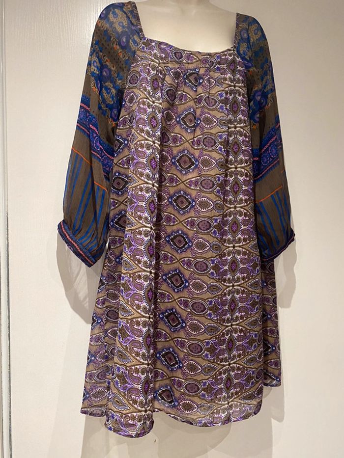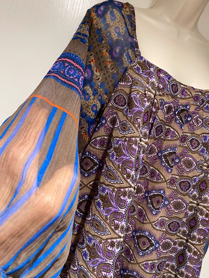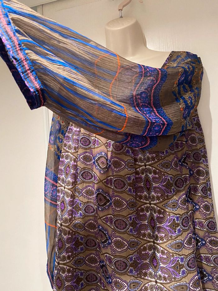 Je vends une robe d’été, Véro Moda, robe légère d’été taille L. Marron violet, beige, blanc bleu Elle est très légèrement doublée La doublure a été recousu renforcé voir photo Taille L. Véro Moda, robe légère d’été taille L. Marron violet, beige, blanc bleu Les Mesure sont données ci dessous Largeur sous les aisselles 50 cm Longueur d’une manche jusque la nuque, 60 cm, longueur milieu du dos 87 cm Largeur bas de Robe 74 cm Mondrelbc /120/oran3