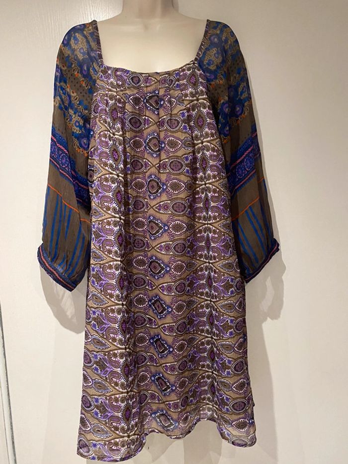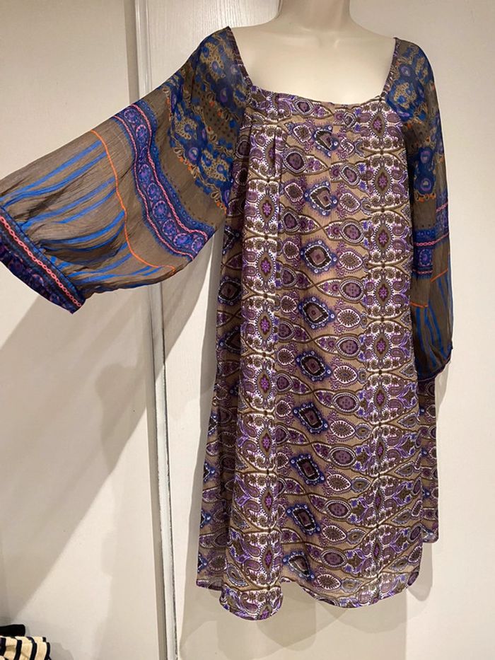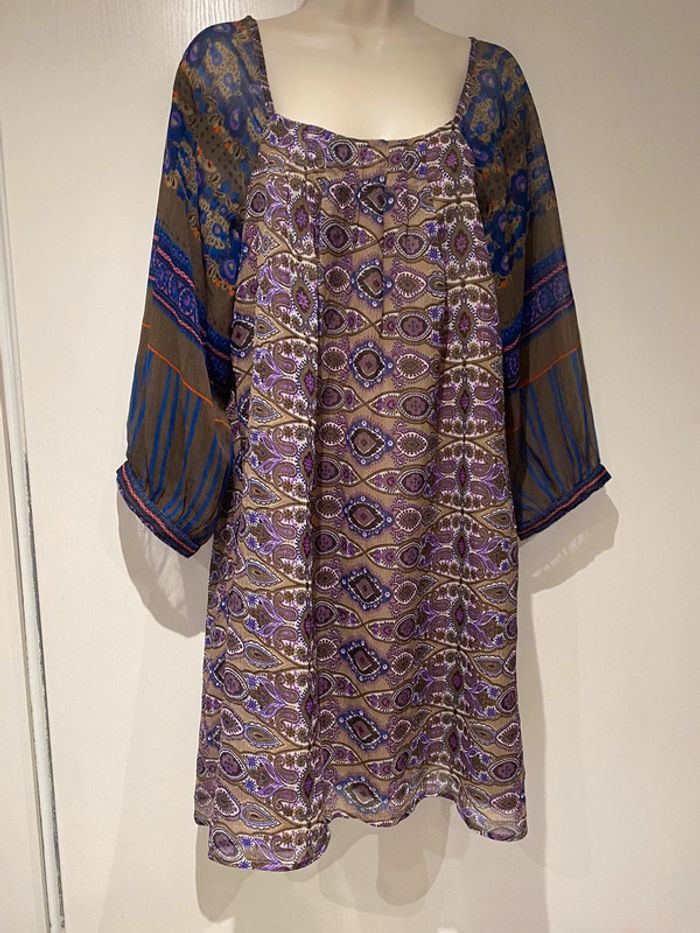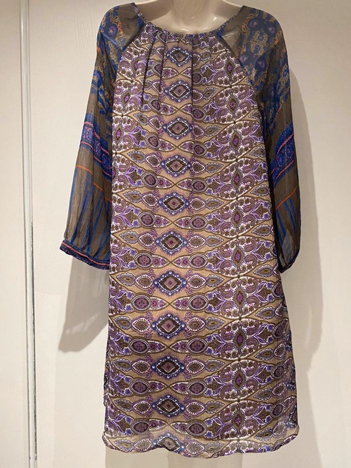 Véro Moda, robe légère d’été taille L. Marron violet, beige, blanc bleu