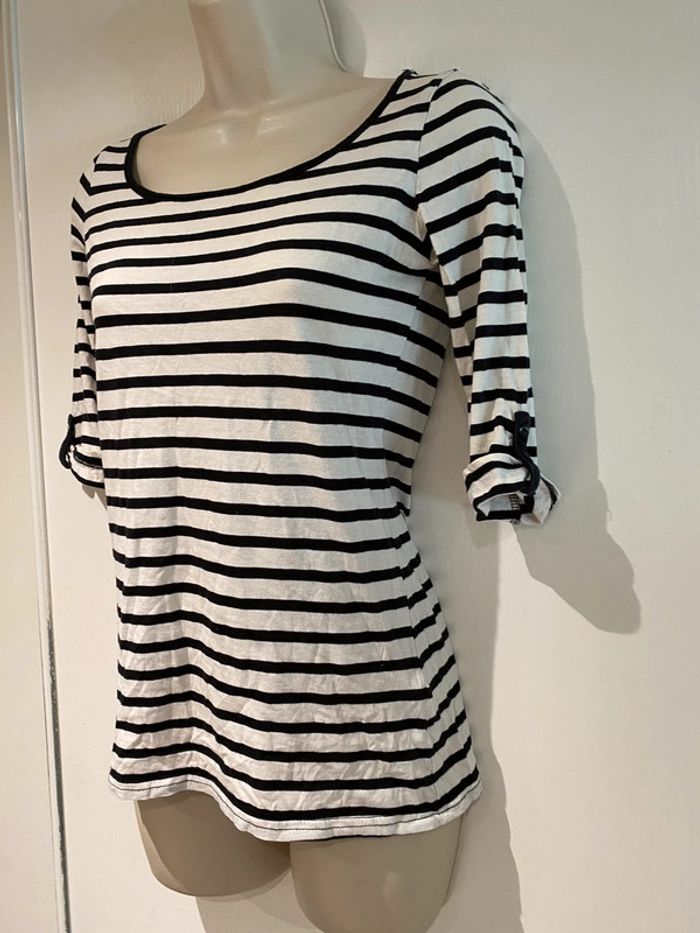 T-shirt Pimkie xs  Style Mariniere noire blanc cassé
