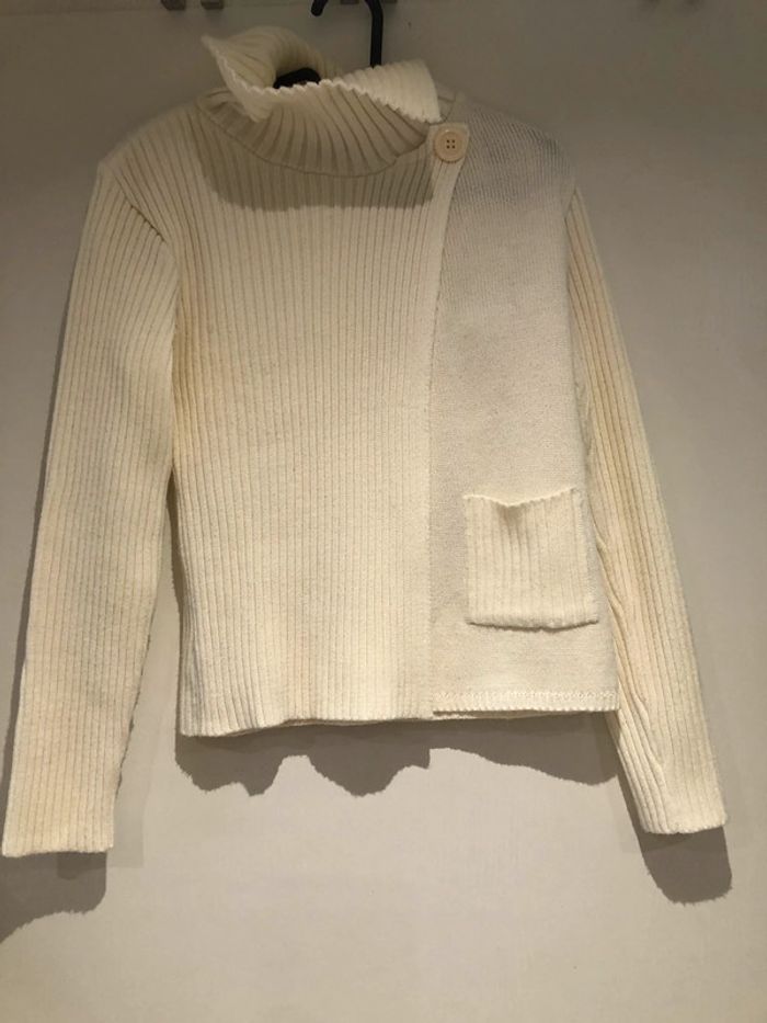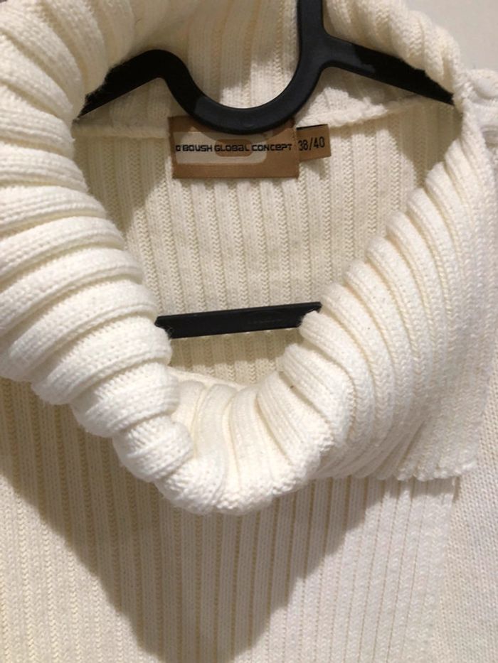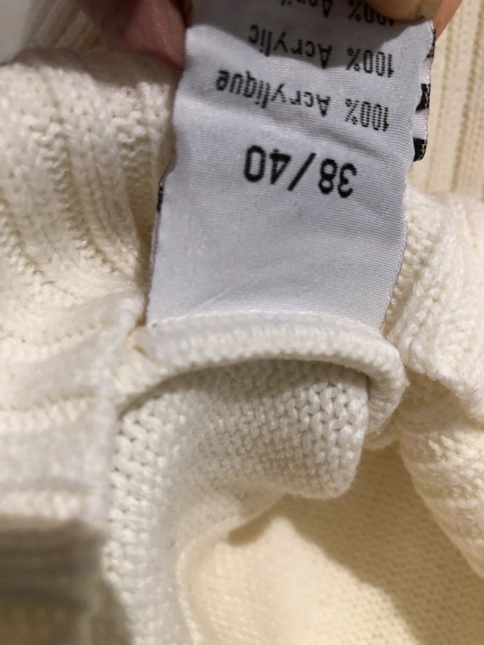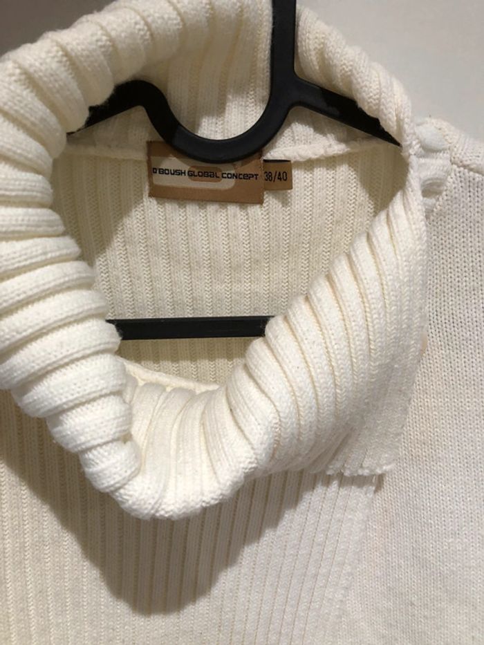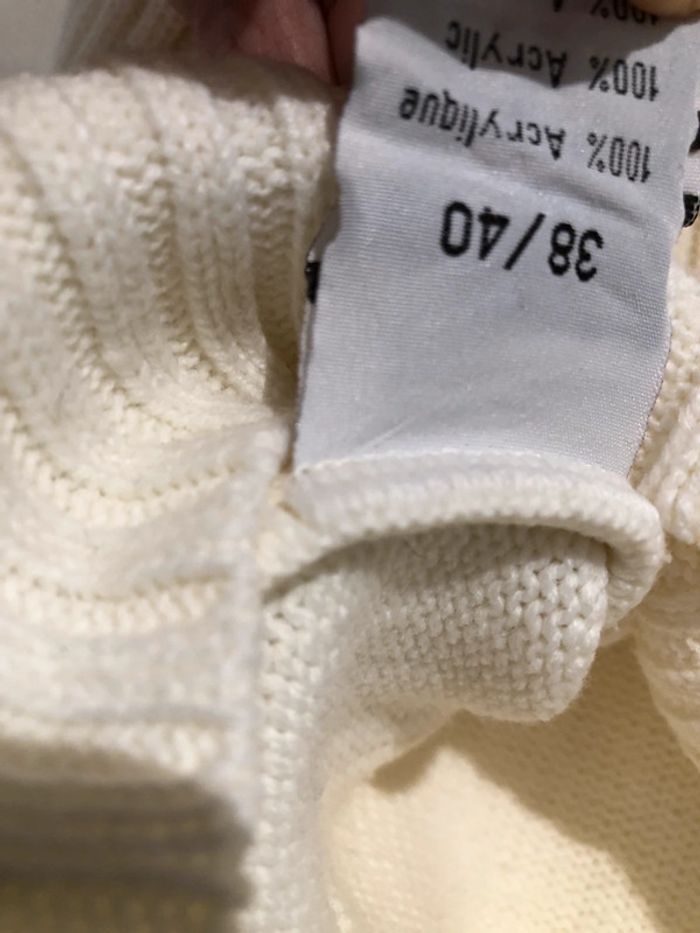 je vends un pull couleurs blanc cassé Crème il est en bon état Il est en taille 38 40 Il y a un pan sur le devant qui fait une petite fantaisie sur le pull. il y a quelques Bouloches . Largeur sous les aisselles 47 cm largeur d’une épaule à l’autre 41 cm Largeur d’une épaule 10,5 cm longueur d’une manche 58,5 cm longueur milieu devant jusque en bas 47 cm longueur du dos jusqu’en bas51 cm 4/12 hauteur du col 16 cm 4/122022/510/Orange13