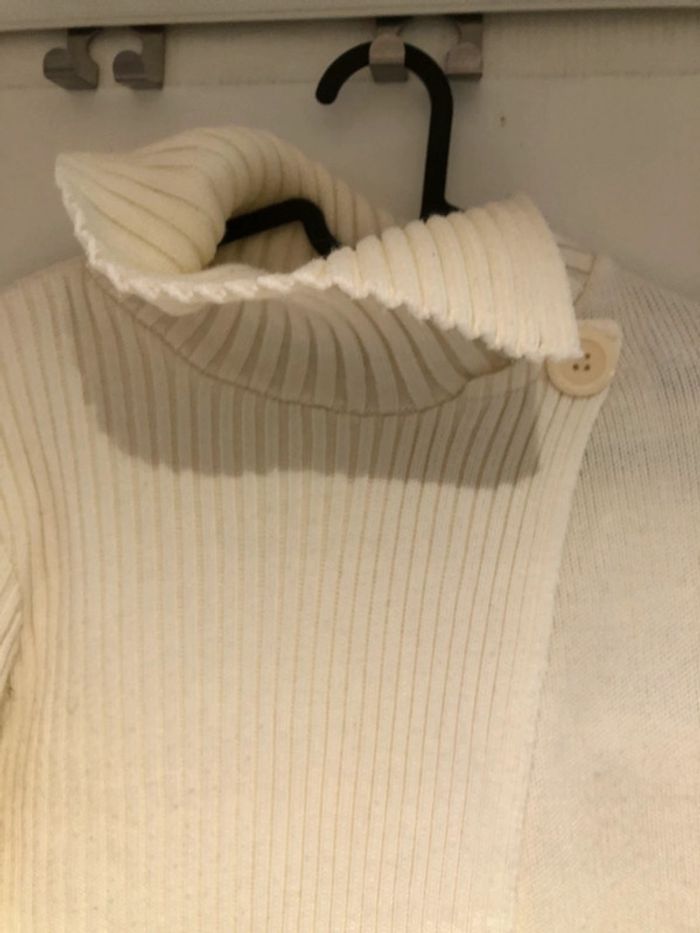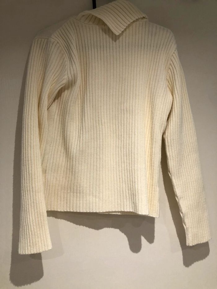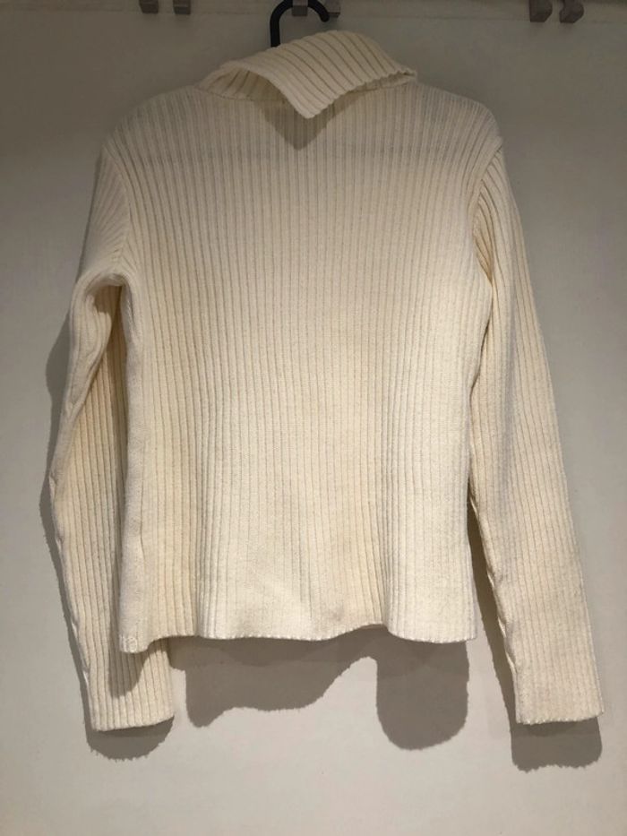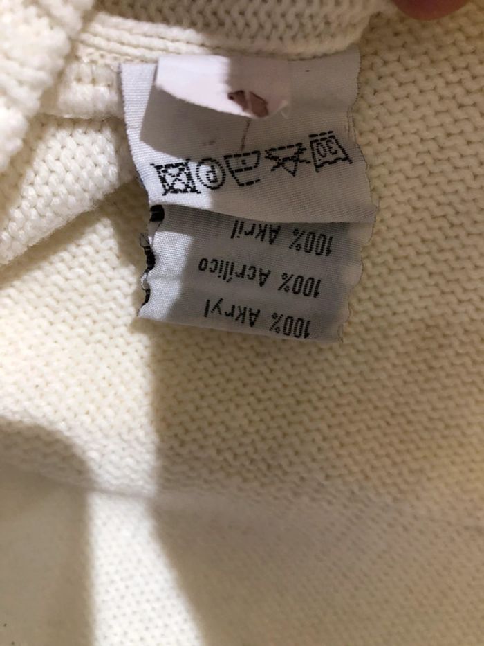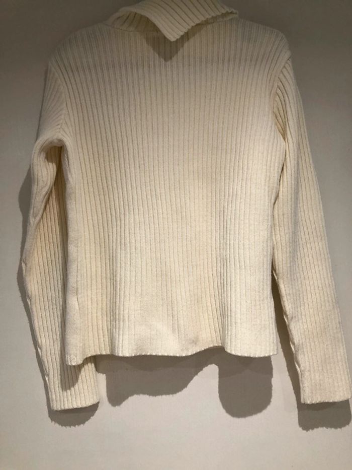 je vends un pull couleurs blanc cassé Crème il est en bon état Il est en taille 38 40 Il y a un pan sur le devant qui fait une petite fantaisie sur le pull. il y a quelques Bouloches . Largeur sous les aisselles 47 cm largeur d’une épaule à l’autre 41 cm Largeur d’une épaule 10,5 cm longueur d’une manche 58,5 cm longueur milieu devant jusque en bas 47 cm longueur du dos jusqu’en bas51 cm 4/12 hauteur du col 16 cm 4/122022/510/Orange13